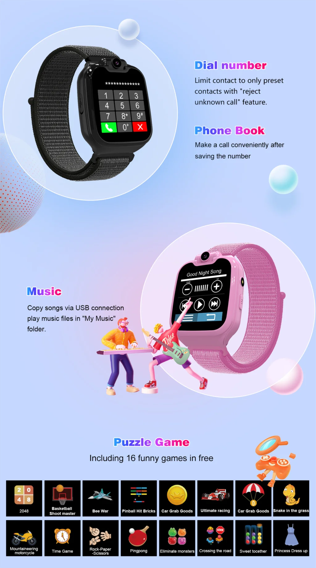 16 juegos integrados, linterna, soporte para descargar juegos o música, la capacidad máxima de expansión puede ser de 16GB(no incluidos),