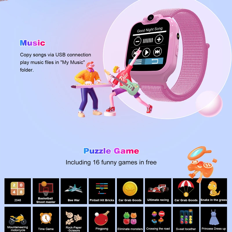 Comprar Reloj inteligente de música para niños, dispositivo con tarjeta TF, 16 juegos, cámara Rotable, conteo de pasos, regalos, 1,54 pulgadas, 2G