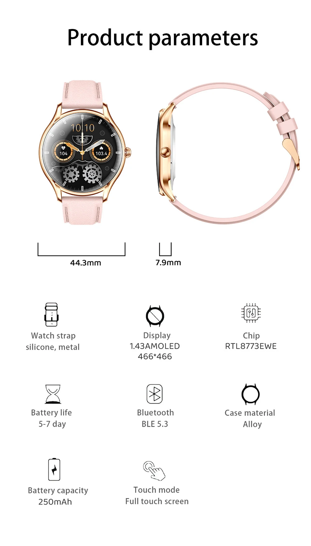 4.pantalla: pantalla AMOLED de 1,43 pulgadas, 466*466 px.