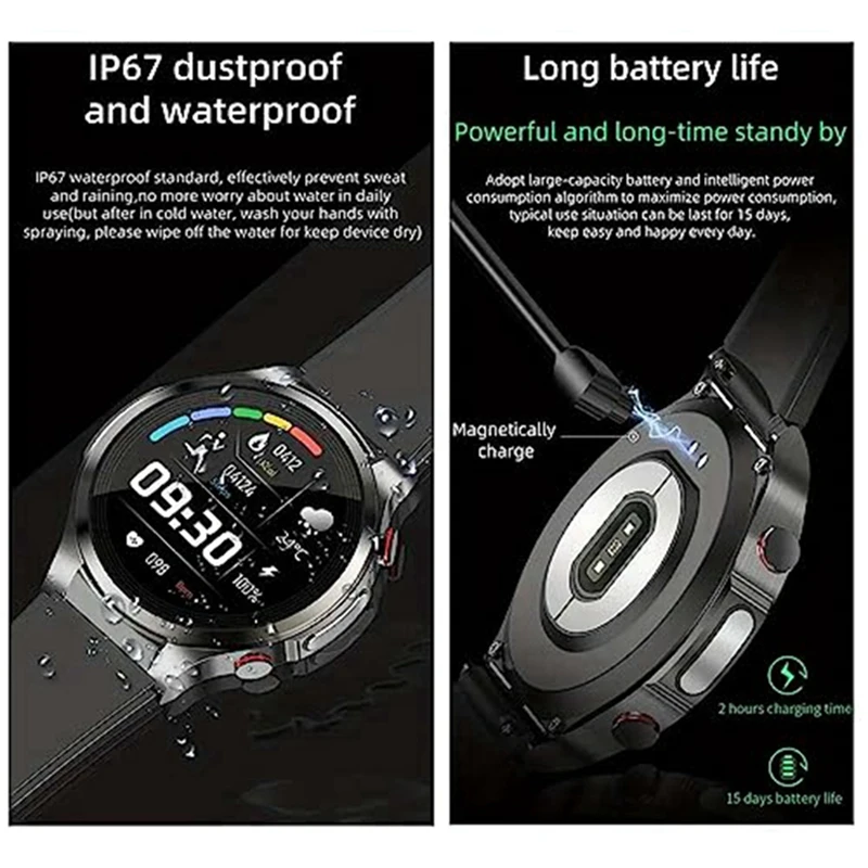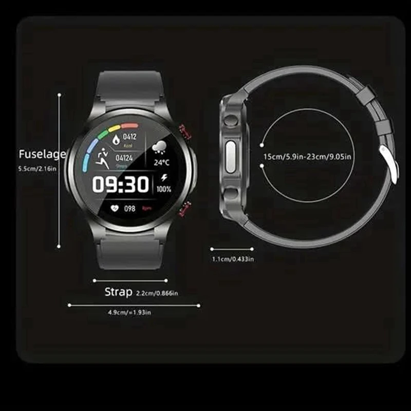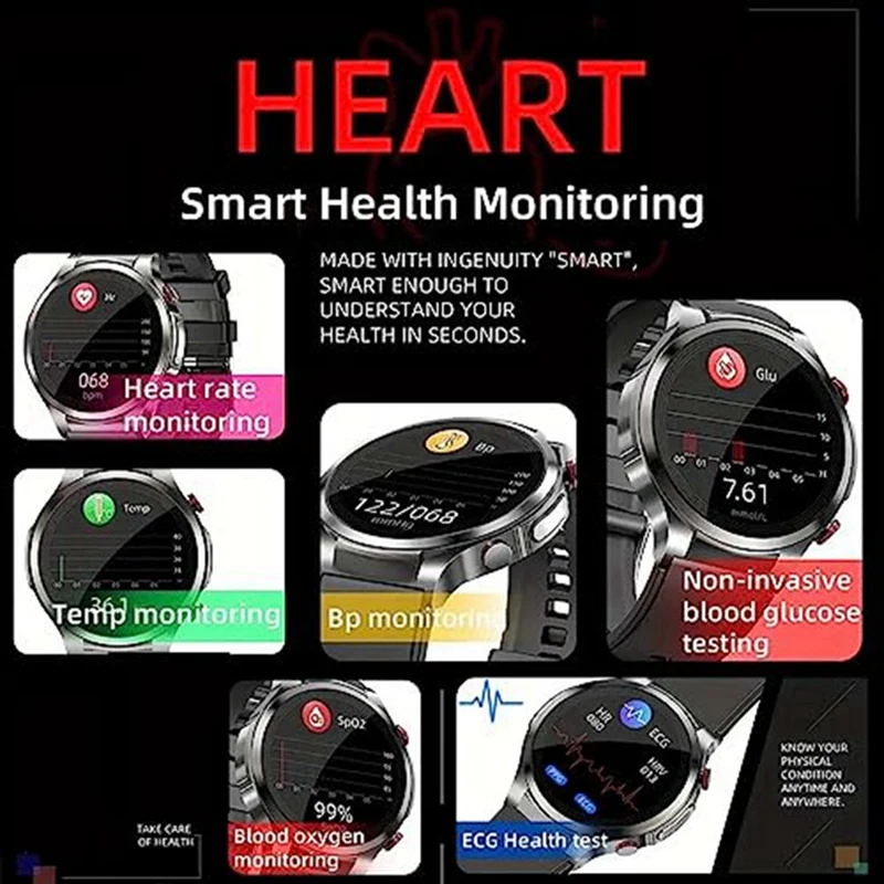 Reloj Monitor de azúcar en sangre: Muchas características valiosas incluyen oxígeno en sangre, presión arterial, azúcar en sangre, pruebas de temperatura, conteo de pasos, distancia, calorías, frecuencia cardíaca, monitoreo del sueño, reproducción de música, cronómetro, cuenta atrás, calculadora, visualización del clima, fotografía remota, iluminación de muñeca y pantalla, encontrar su teléfono y más.