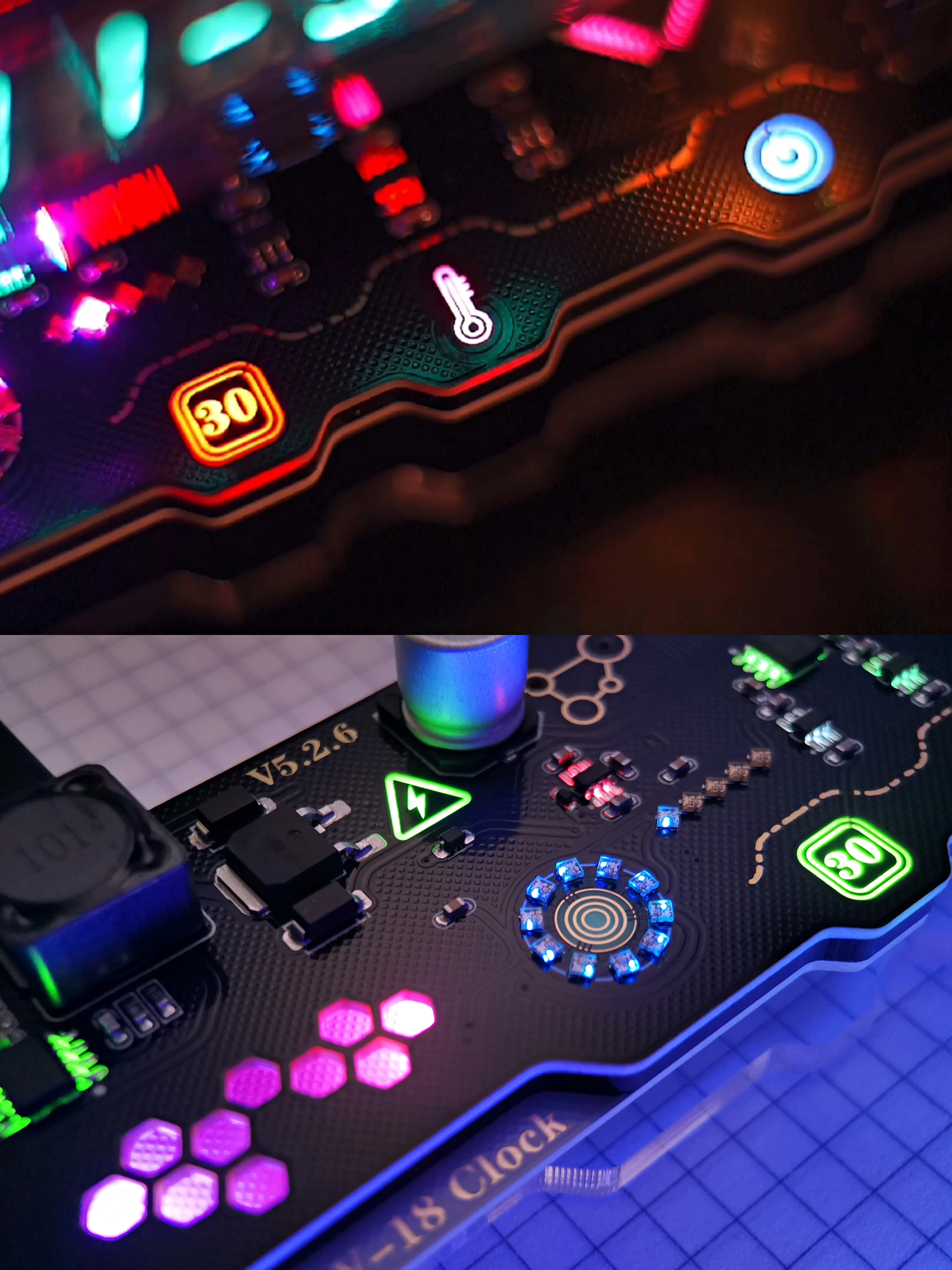 Adorno de reloj de tubo fluorescente estilo Cyberpunk RGB dinámico