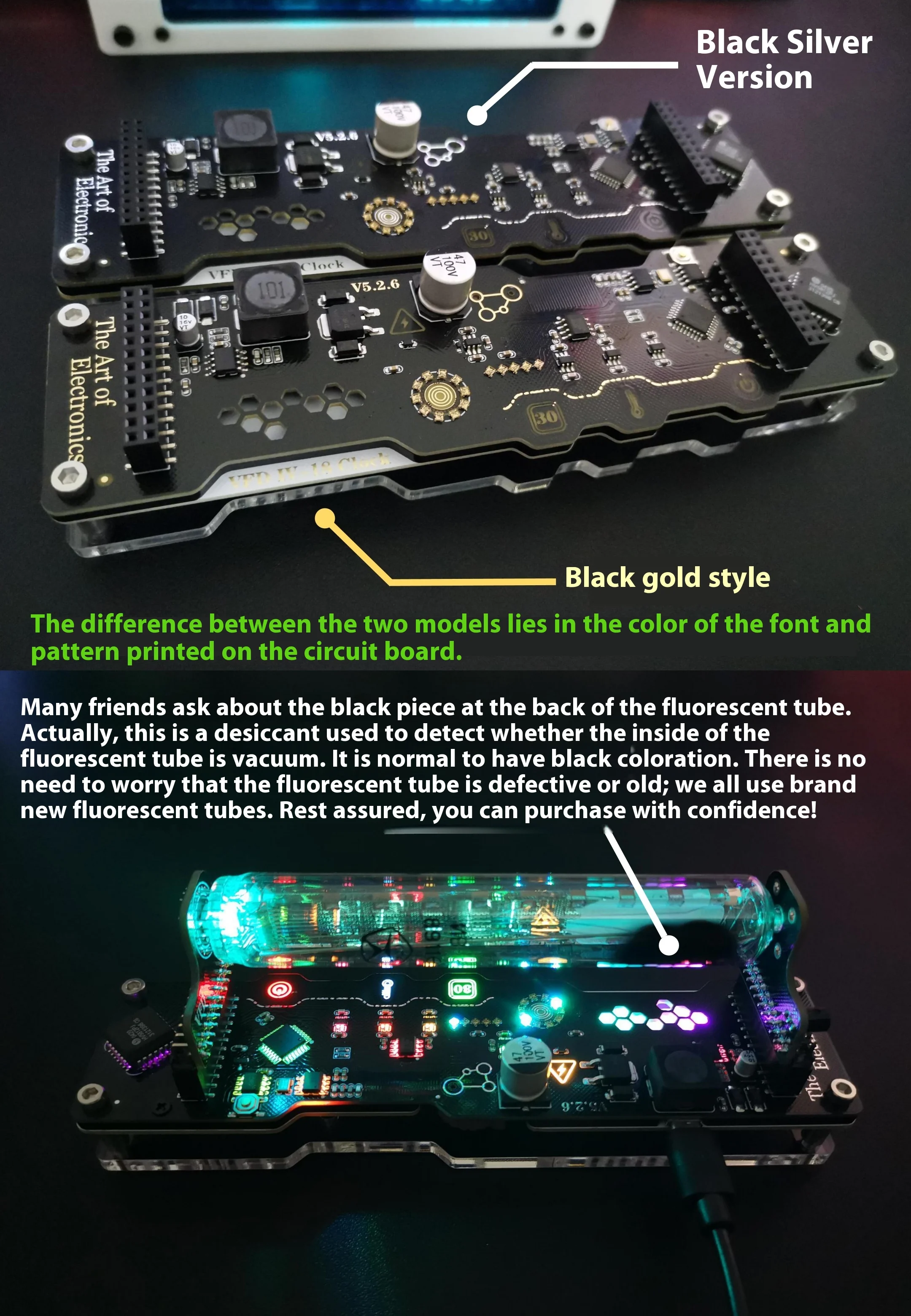 Consejos: Hay una pieza negra detrás del tubo fluorescente, que es una sustancia utilizada para detectar si el interior del tubo fluorescente está bajo vacío. Es normal tener negro. No se preocupe si los tubos fluorescentes se rompen o viejos, todos utilizamos tubos fluorescentes nuevos, para que pueda comprarlos con confianza.