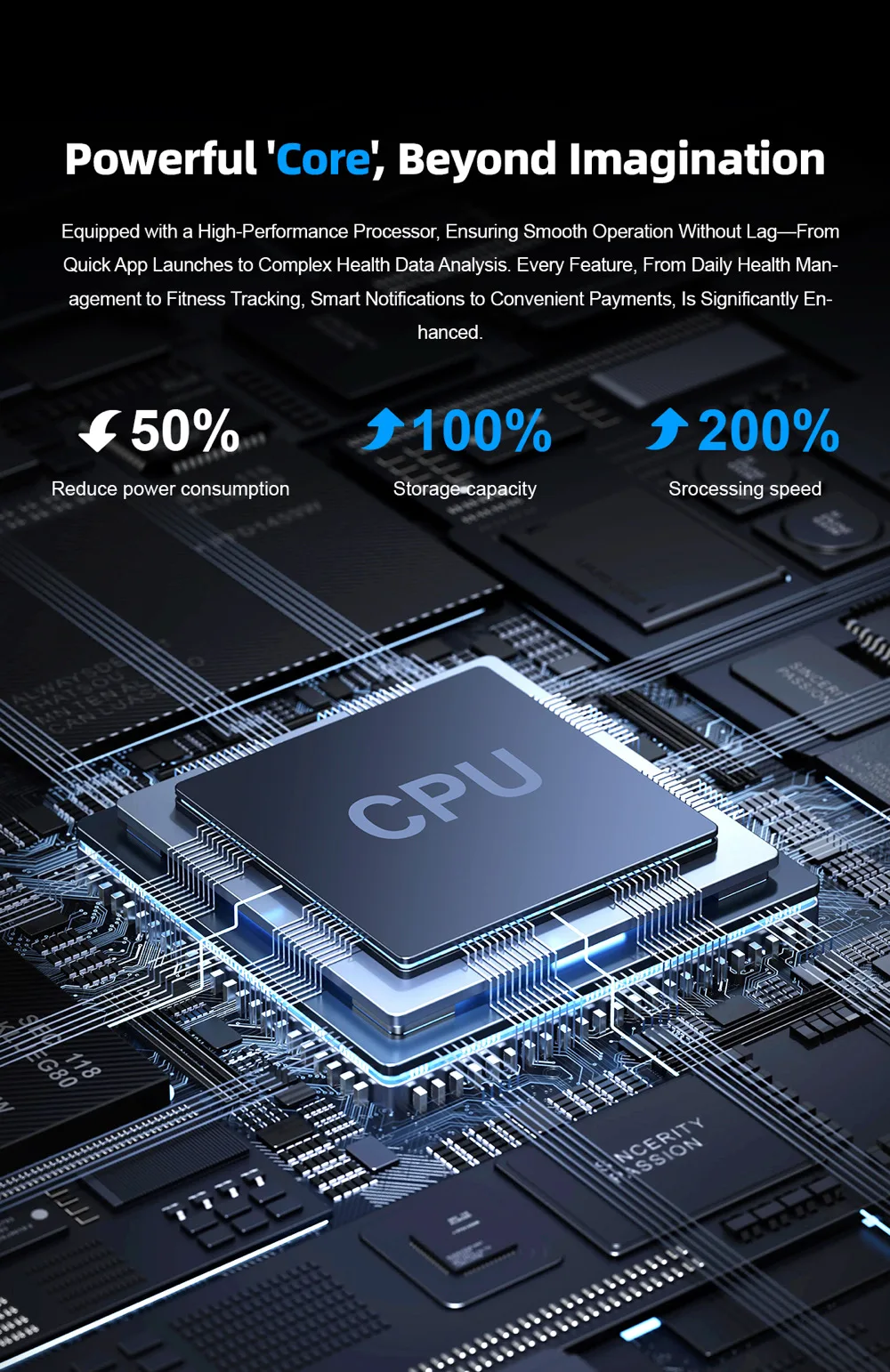 "Marcado de marcación, conexión de código QR, múltiples menús de interfaz de usuario, llamadas de voz, actualización OTA, conteo de pasos, seguimiento de calorías, modos deportivos, pantalla de seguimiento para despertar, monitoreo del sueño, recordatorio de llamadas entrantes, notificación de mensajes, recordatorio de sedentarismo, recordatorio de despertador, cronómetro, cambio de dial, dial dinámico 3D, reproducción de música, entrenamiento de respiración, medición horaria, frecuencia cardíaca, presión arterial, medición delDeslice hacia la izquierda en el escritorio del dial: cambie al menú de primer nivel; Deslice hacia la derecha para acceder al menú rápido.Deslice hacia arriba para obtener la interfaz de mensajes; Deslice hacia abajo para configurar el interruptor de llamada Bluetooth, ajuste de brillo, modo de ahorro de energía y modo no molestar.Asistente de voz."
