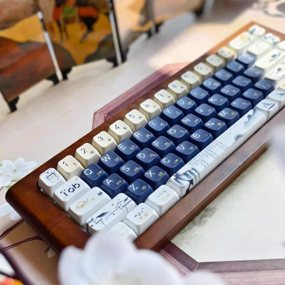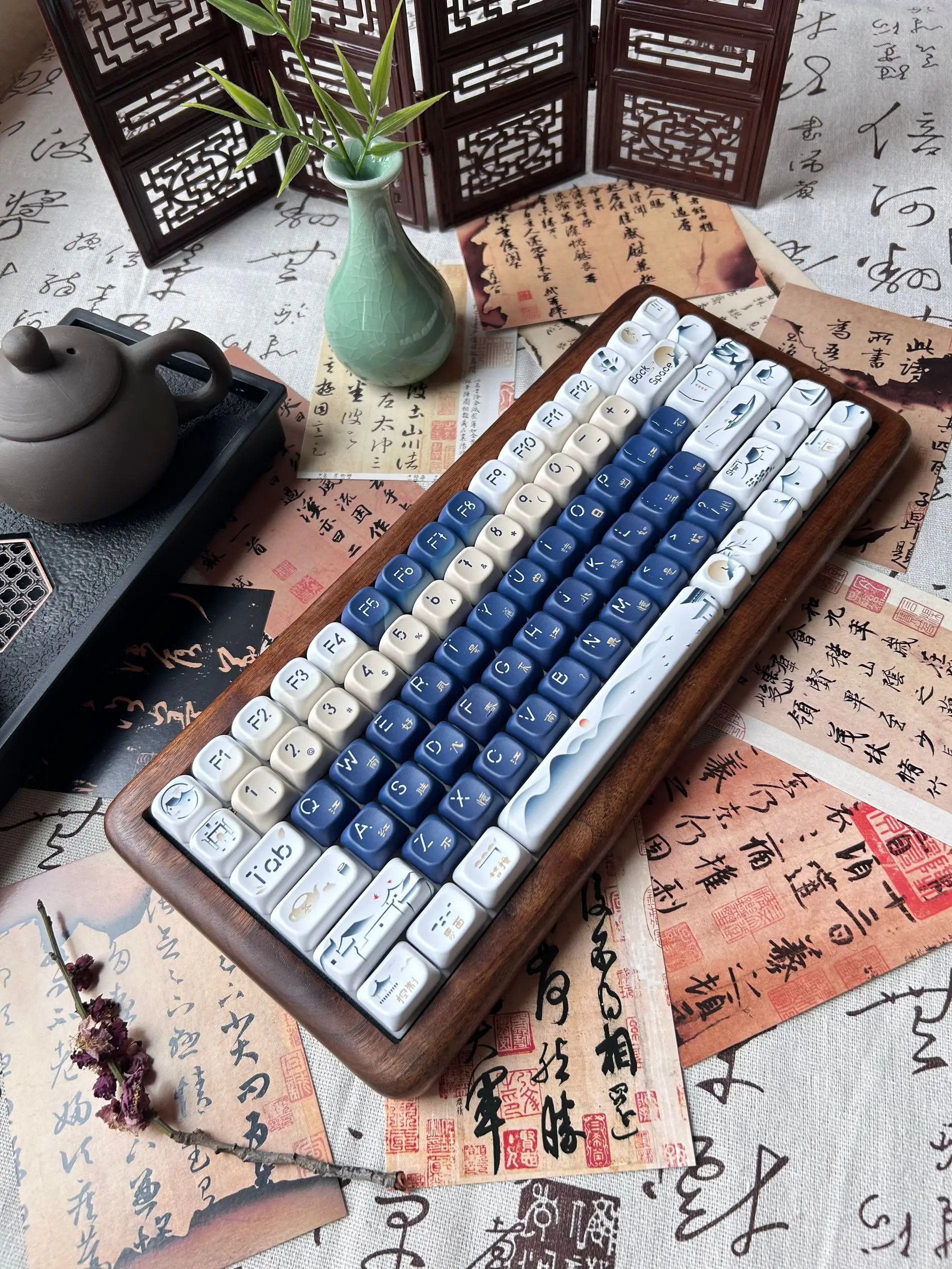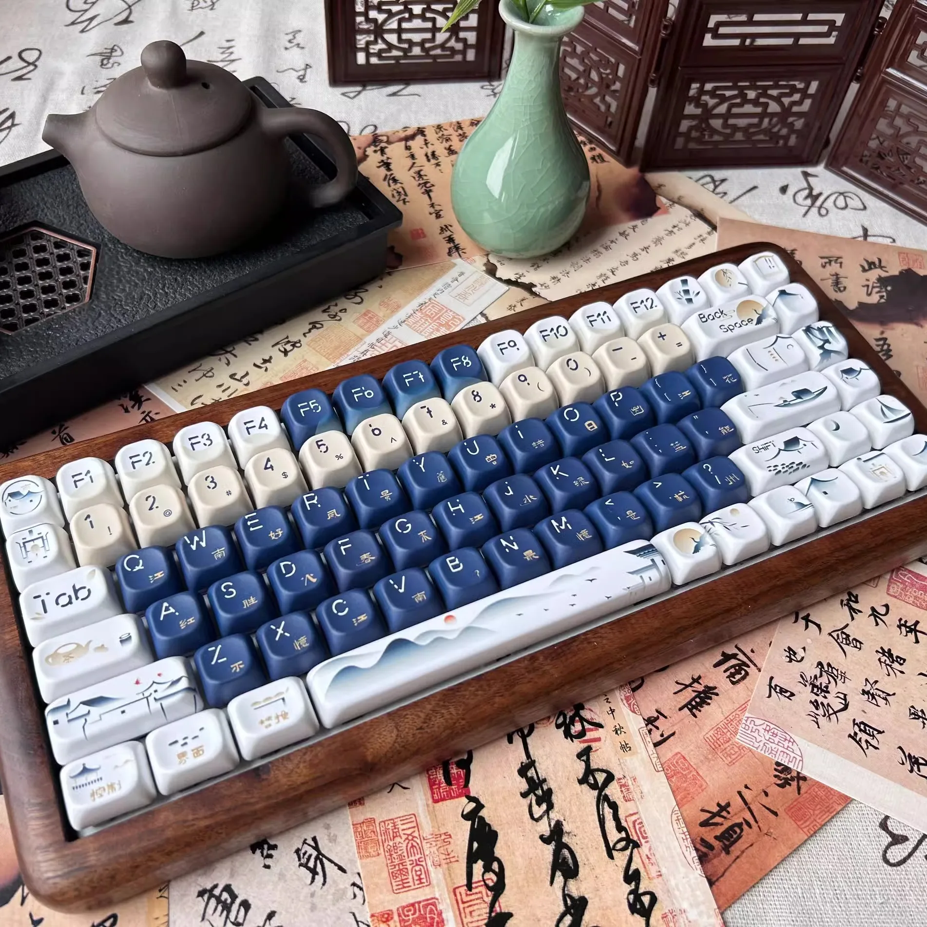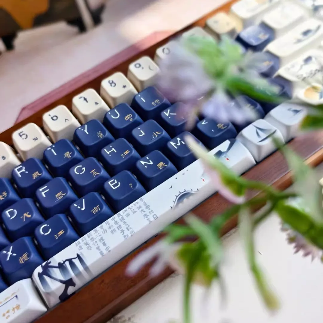 Comprar [Rememing Jiangnan] 140Key Keycap Mda/Foa Pbt, sublimación térmica de cinco lados, estilo chino, azul marino, caracteres chinos