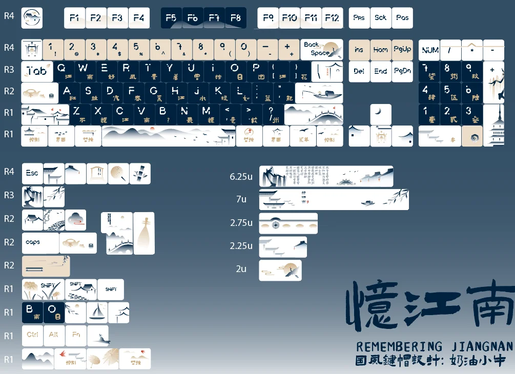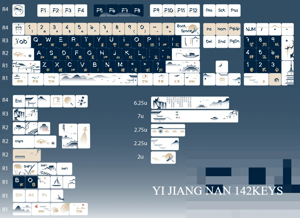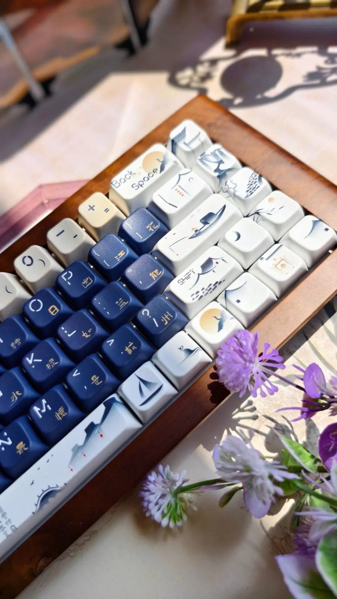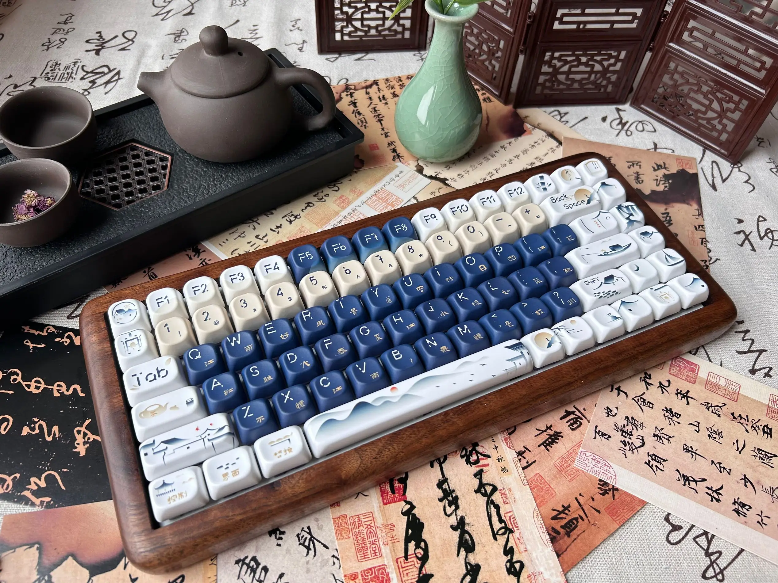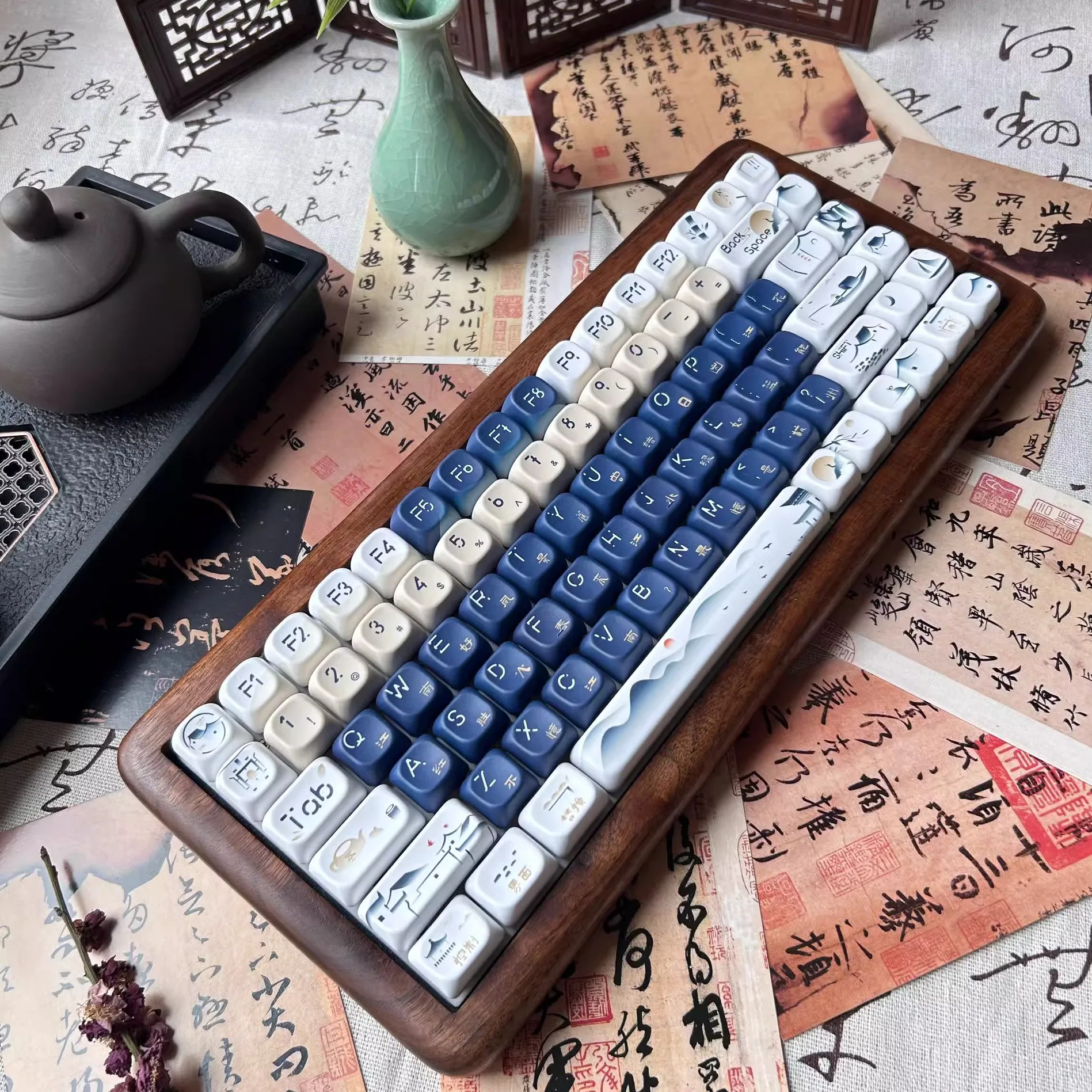Comprar [Rememing Jiangnan] 140Key Keycap Mda/Foa Pbt, sublimación térmica de cinco lados, estilo chino, azul marino, caracteres chinos