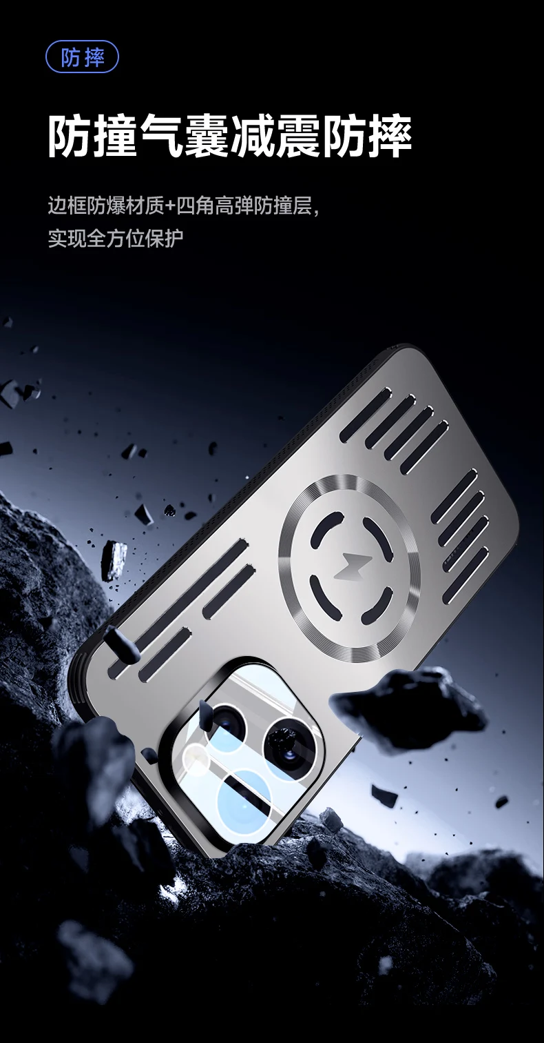 Para Reno 15 Pro Magsafe caja de disipación de calor de Metal de carga para OPPO Reno 15 Pro aleación de aluminio cubierta dura a prueba de golpes parachoques