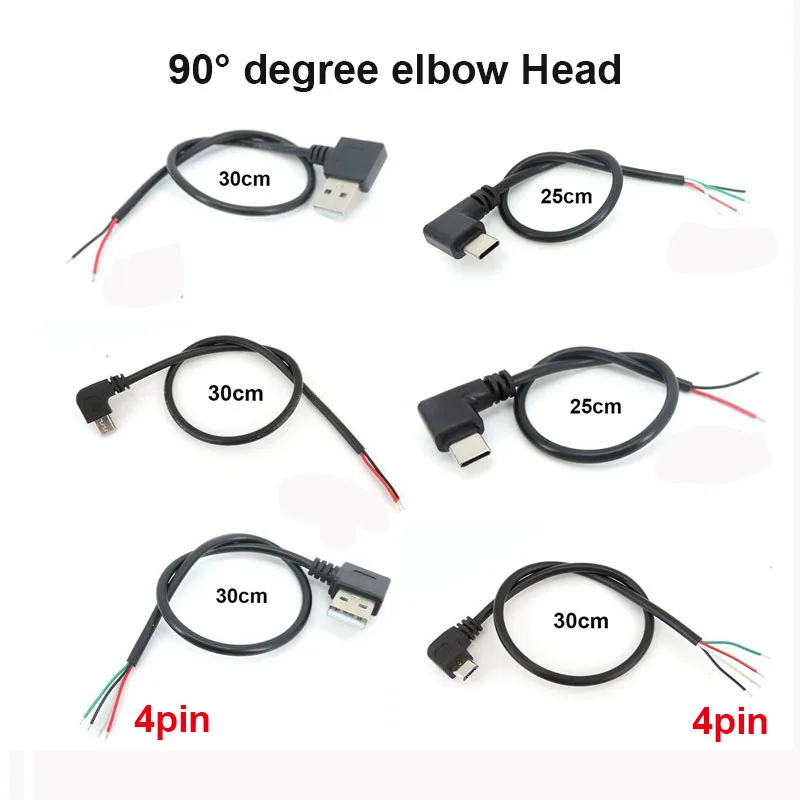 DIY repair welding cable 2 wire 4 Wires Micro USB 2.0 A Elbow Head Male Jack 4pin/2pin type-c male extension cable line