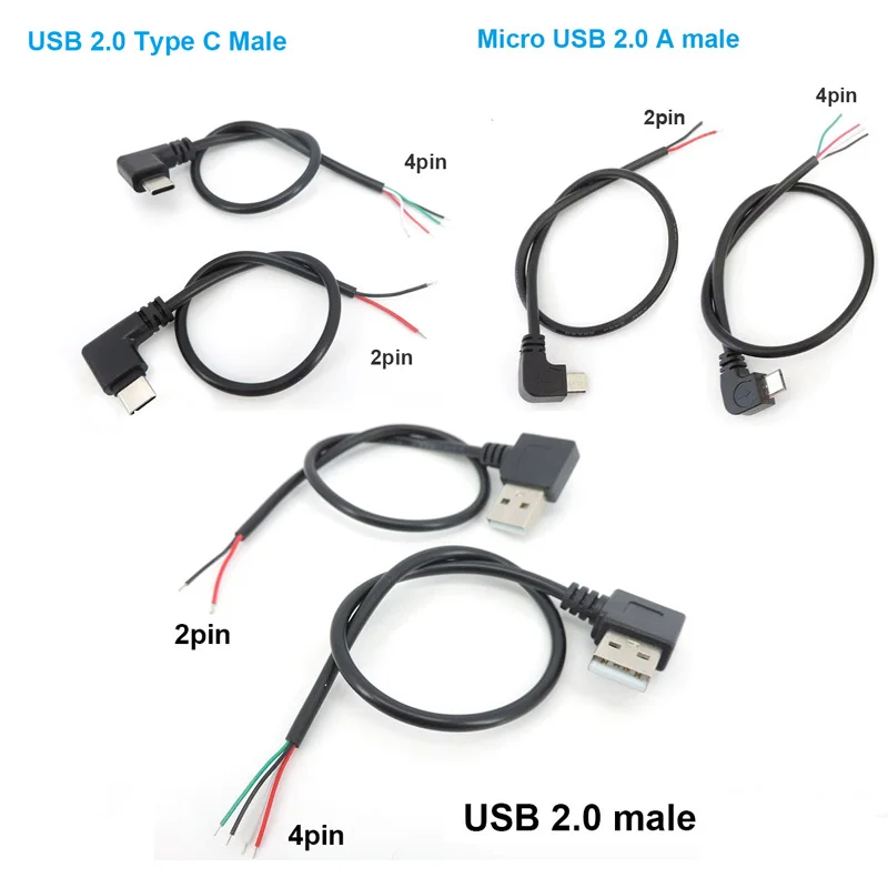 Comprar Reparación DIY USB macho a cable 4 pines/2 pines 2 cables 4 cables Micro USB 2,0 A codo cabeza macho Jack tipo-c cable de extensión línea A7