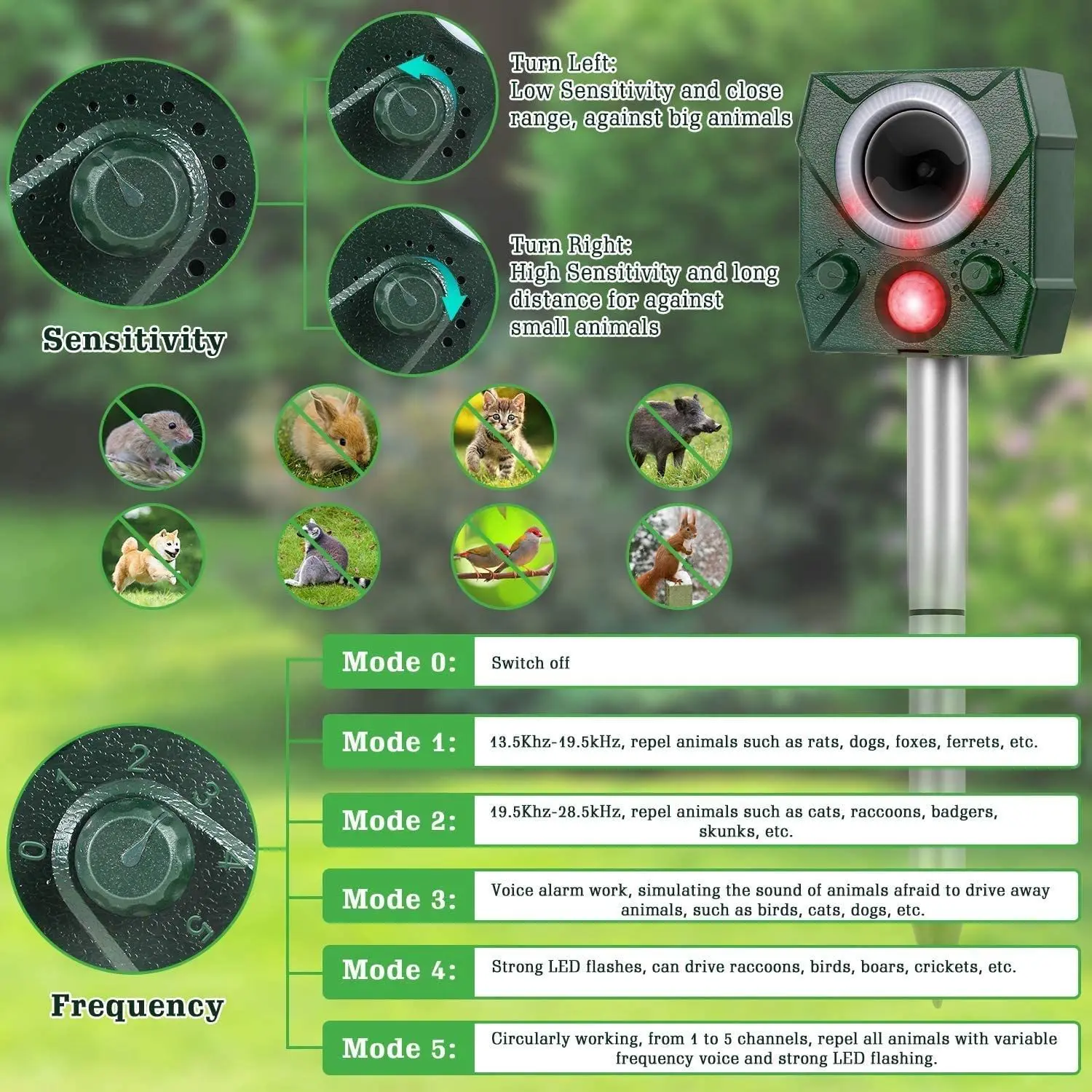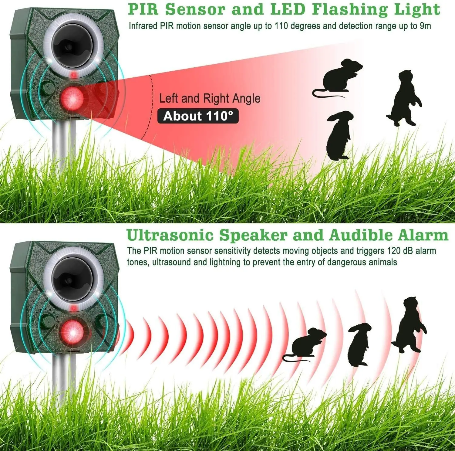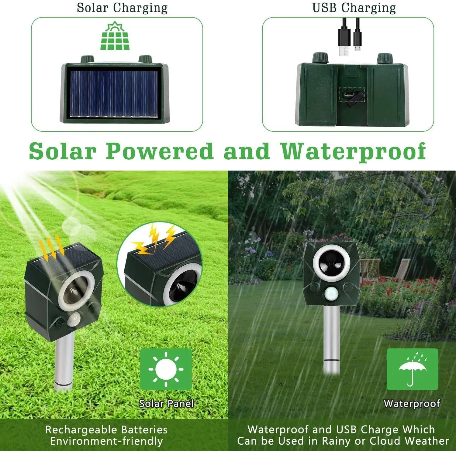 Repelente solar de animales, repelente ultrasónico de energía Solar recargable, alarma de luz LED