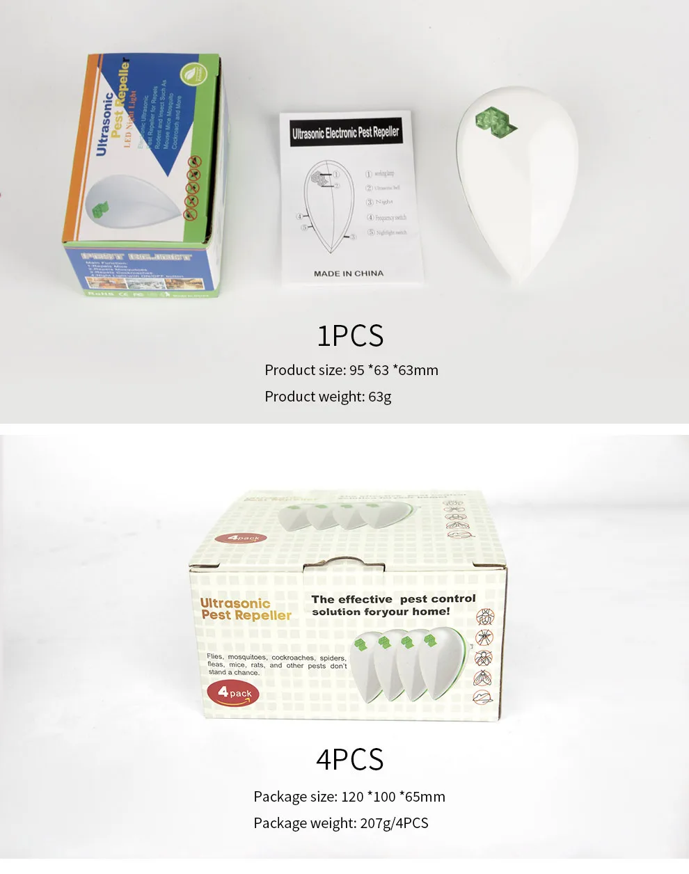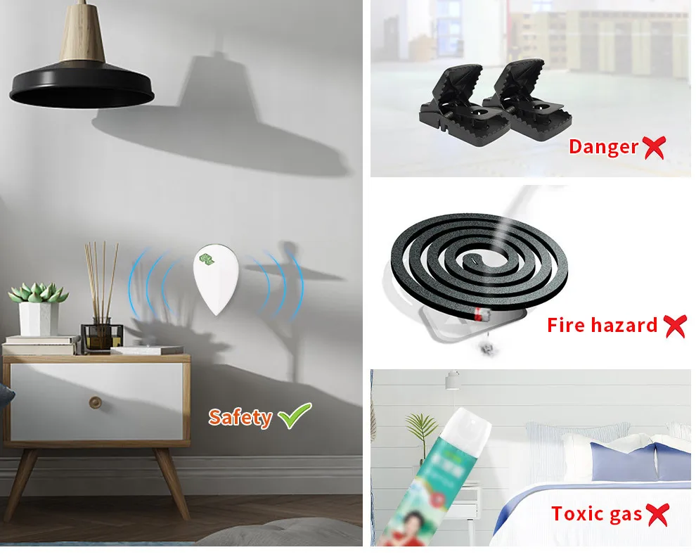 Repelente de mosquitos ultrasónico enchufable para interiores - Repelente multifuncional de insectos y roedores con luz nocturna LED