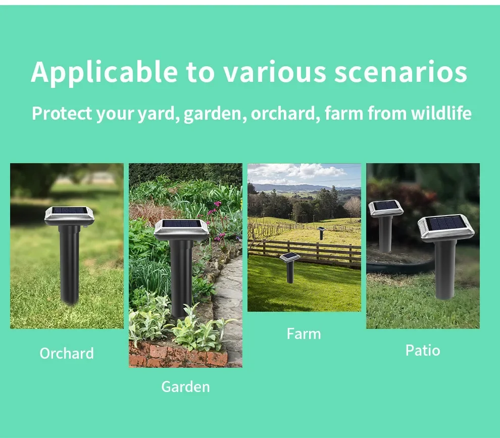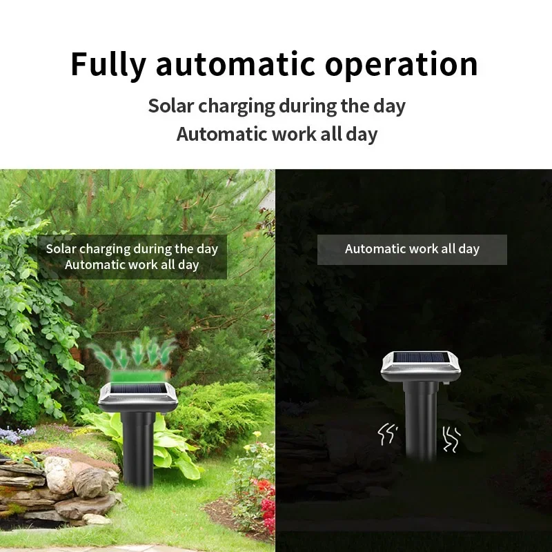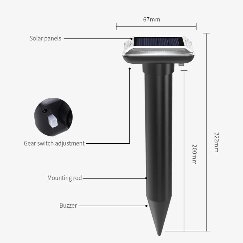 Repelente de plagas de topos sónicos, repelente de roedores, con energía Solar, lámpara para exteriores, patio trasero, tierras de cultivo, repelente de ratones, 1 piezasDescripción: