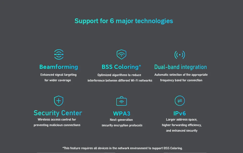 * Esta característica requiere que todos los dispositivos en el entorno de red sean compatibles con BSS Coloring.