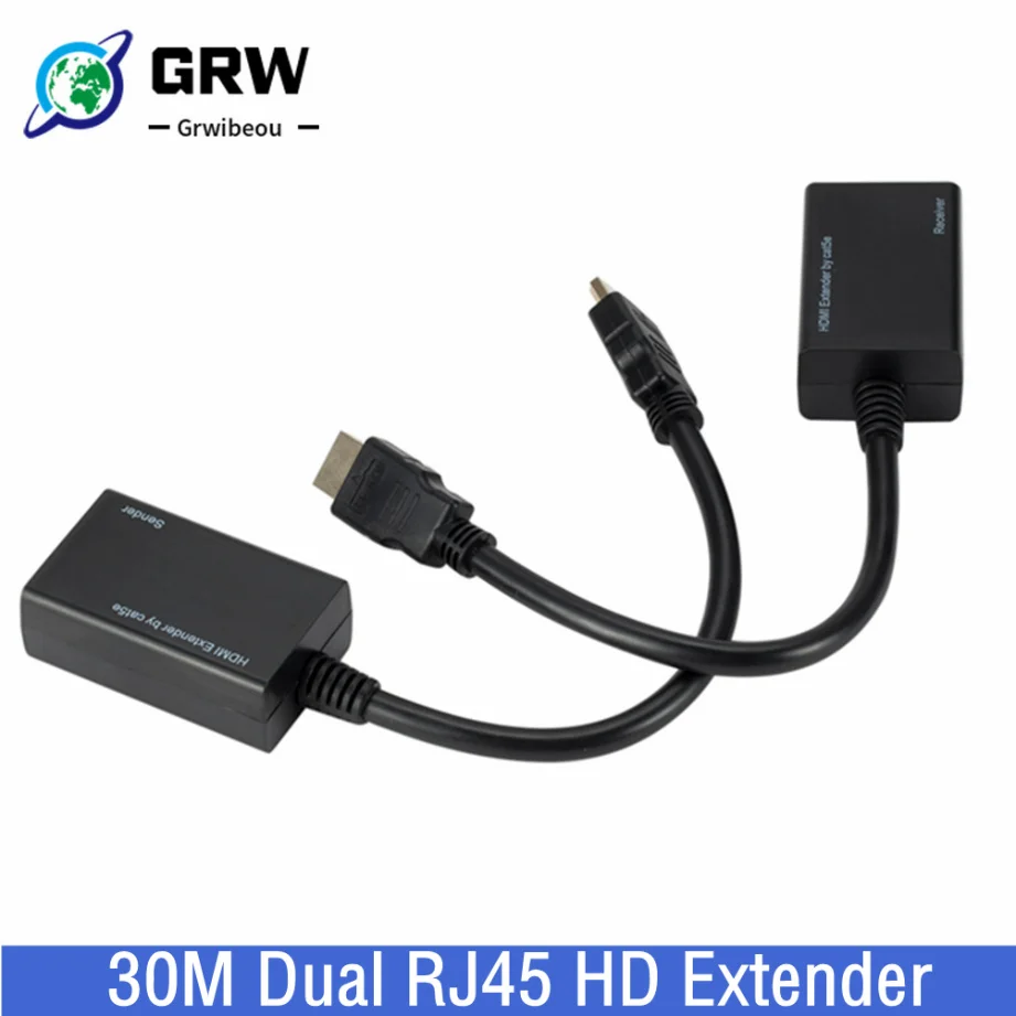 Comprar Repetidor extensor Ethernet LAN RJ45 CAT5e CAT6, compatible con HDMI, compatible con resolución HD 1080P de hasta al menos 100 pies (30M)