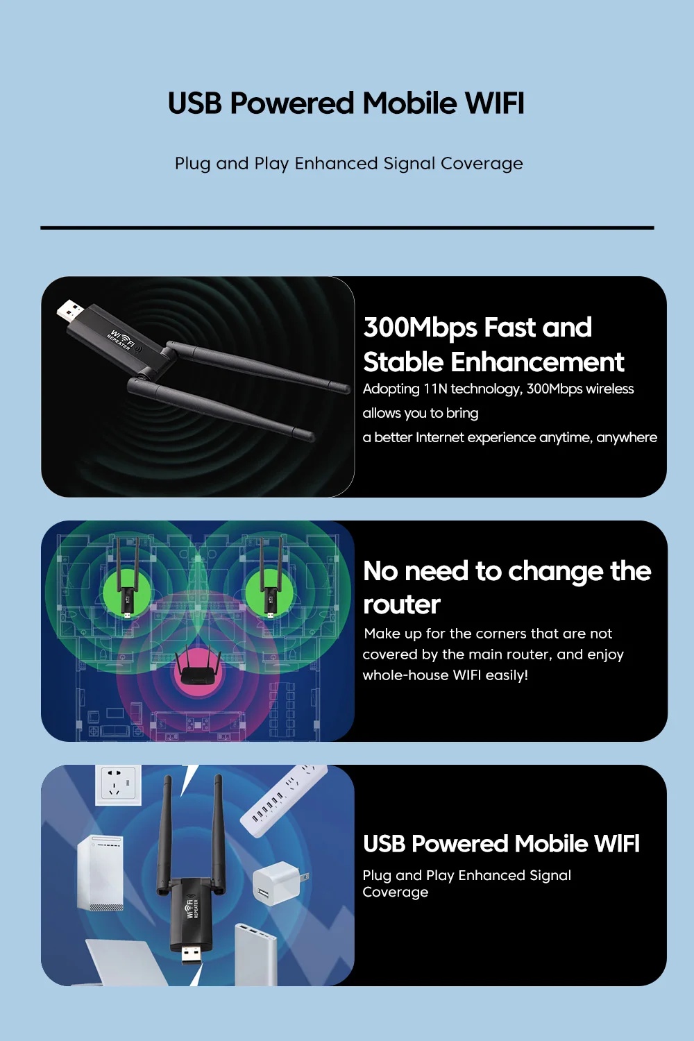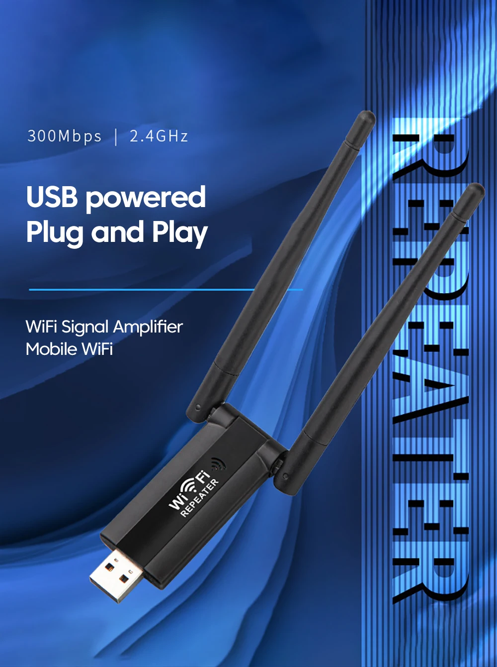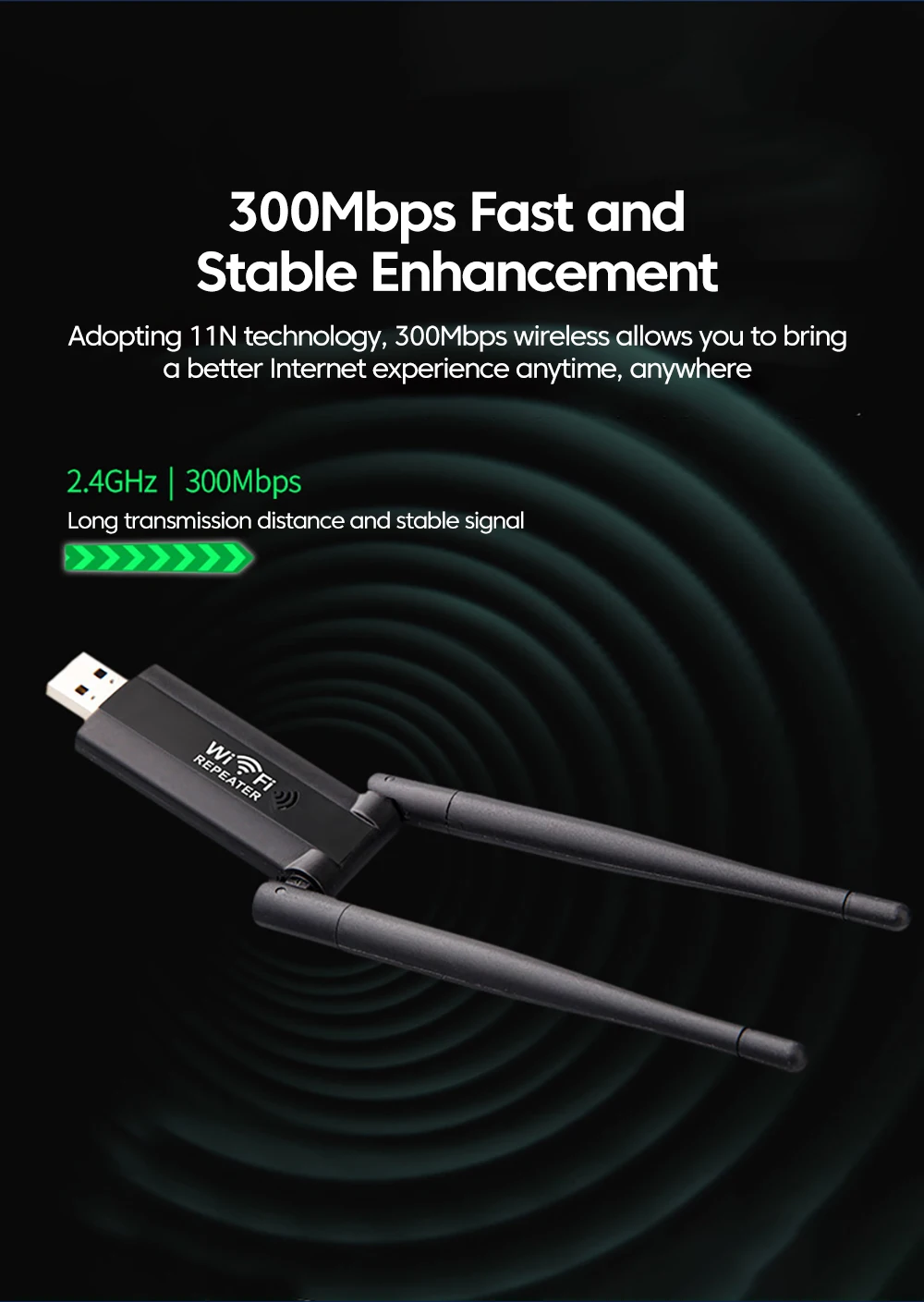 Comprar Repetidor inalámbrico USB WiFi 2,4G de 300Mbps, amplificador de señal WiFi, enrutador Wi-Fi de largo alcance, extensión de red doméstica