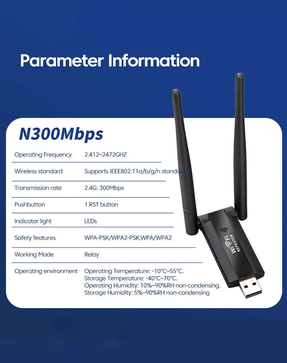 Los productos repetidores USB requieren que el enrutador original tenga una contraseña establecida y el relé de señal WiFi debe realizarse con la premisa de conocer la contraseña.Sin contraseña o no se puede establecer una contraseña de forma independiente, el producto no se puede utilizar