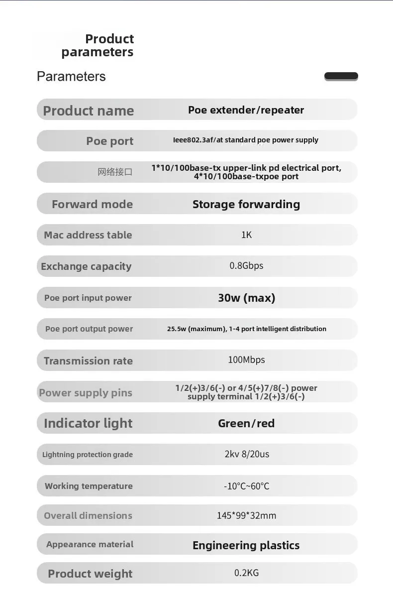 Red de monitoreo repetidor POE estándar nacional un punto cuatro nivel extensor de señal exterior Lianbao PoeExtenderRed de monitoreo repetidor POE estándar nacional un punto cuatro nivel extensor de señal exterior Lianbao PoeExtender Shenzhen Hengxin Video Technology Co., Ltd