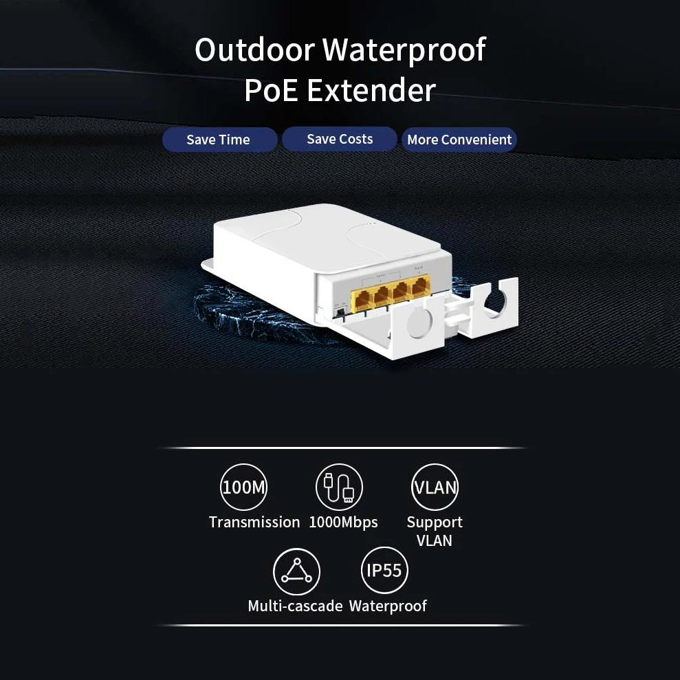 Comprar Repetidor POE impermeable IP55 de 4 puertos 100/1000Mbps 1 a 3 conmutador de red extensor PoE para cámara POE AP sin cables