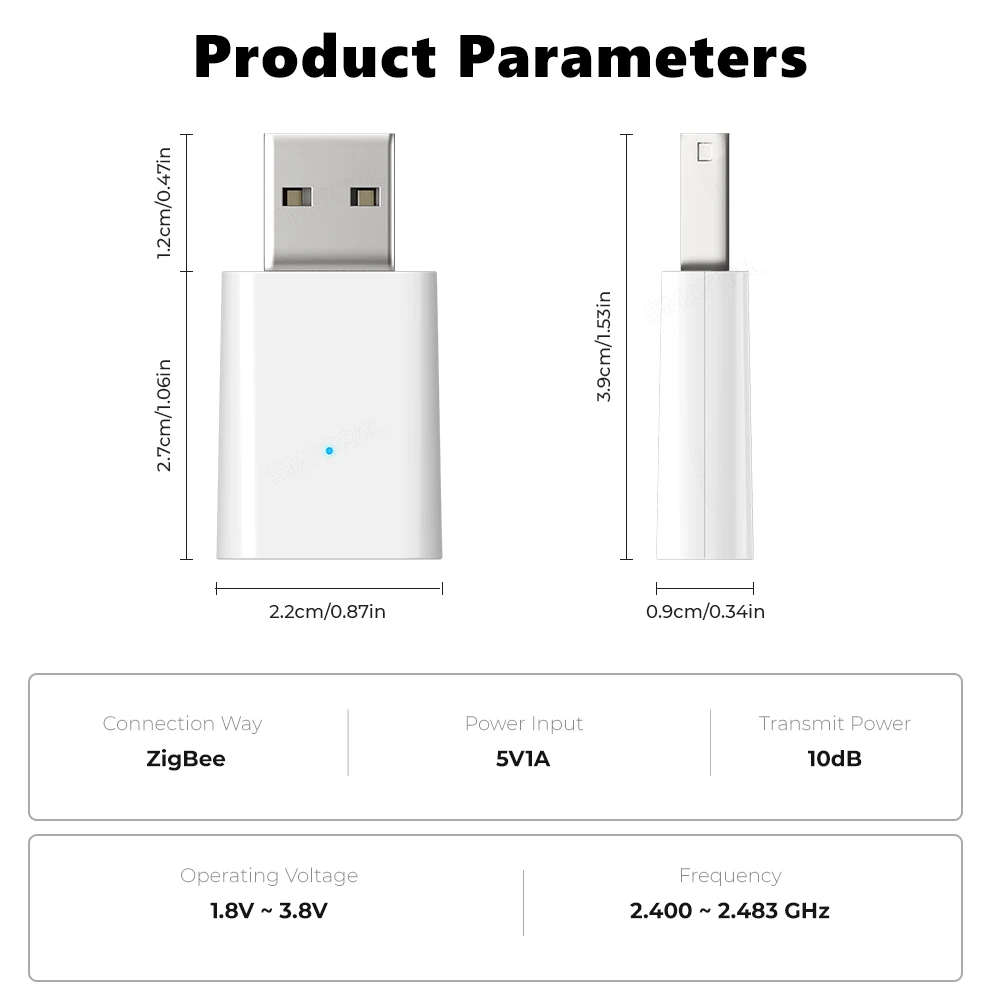 1.Solución de señal ZigBee de bajo costo: el pequeño diseño mini USB garantiza su bajo costo pero su característica funcional, funcionando bien para resolver el problema de distancia entre los dispositivos inteligentes Tuya ZigBee al transmitir una señal ZigBee estable, que resuelve eficazmente el problema de control causado por la señal bloqueada en una Tuya Hub ZigBee solo para varios dispositivos a larga distancia.