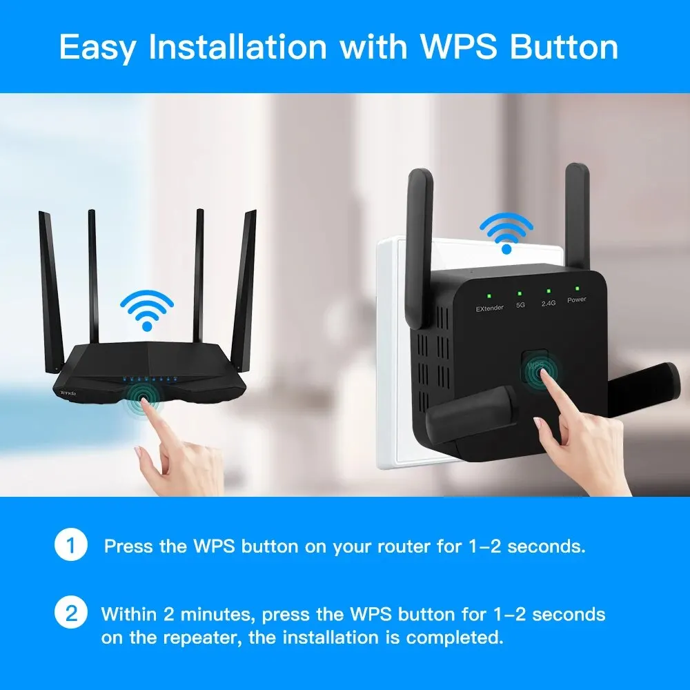 1200Mbps de Doble Banda Inalámbrica WiFi Repetidor 2,4G 5GHz Wifi Amplificador de Señal Extender Router Red Wi-Fi Repetidor de Largo Alcance Inalámbrico Wi-fi Repetidor