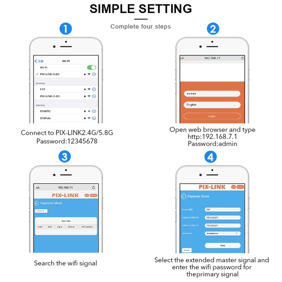 Q1.when i put the wireless password,Why can't I continue set up the repeater?A.Please check whether you enter the same password as your router, and check is there any special characters in it, such as ~!@#$%^&*(). If yes, please change your router password. Repeater can not identify special characters.