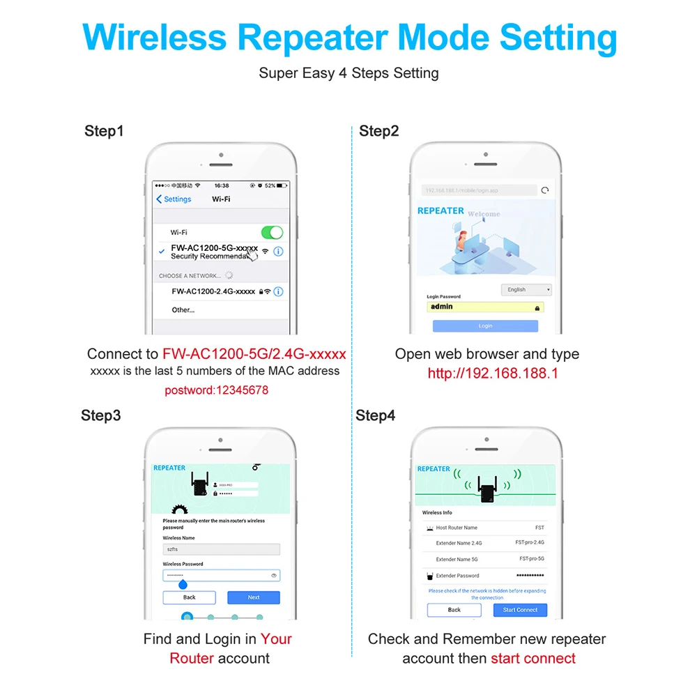 【Configuración rápida y acceso seguro a la red】Con el botón WPS, puede iniciar el extensor en modo de funcionamiento en 5 segundos, ¡qué fácil es!Puedes seguir el maniquí para configurar el repetidor.