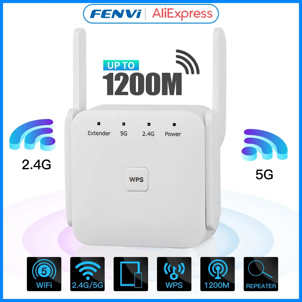 Comprar Repetidor WiFi AC1200 de 5Ghz, enrutador de 1200Mbps, amplificador extensor WiFi, amplificador de señal Wi-Fi de 2,4G/5GHz, punto de acceso de red de largo alcance