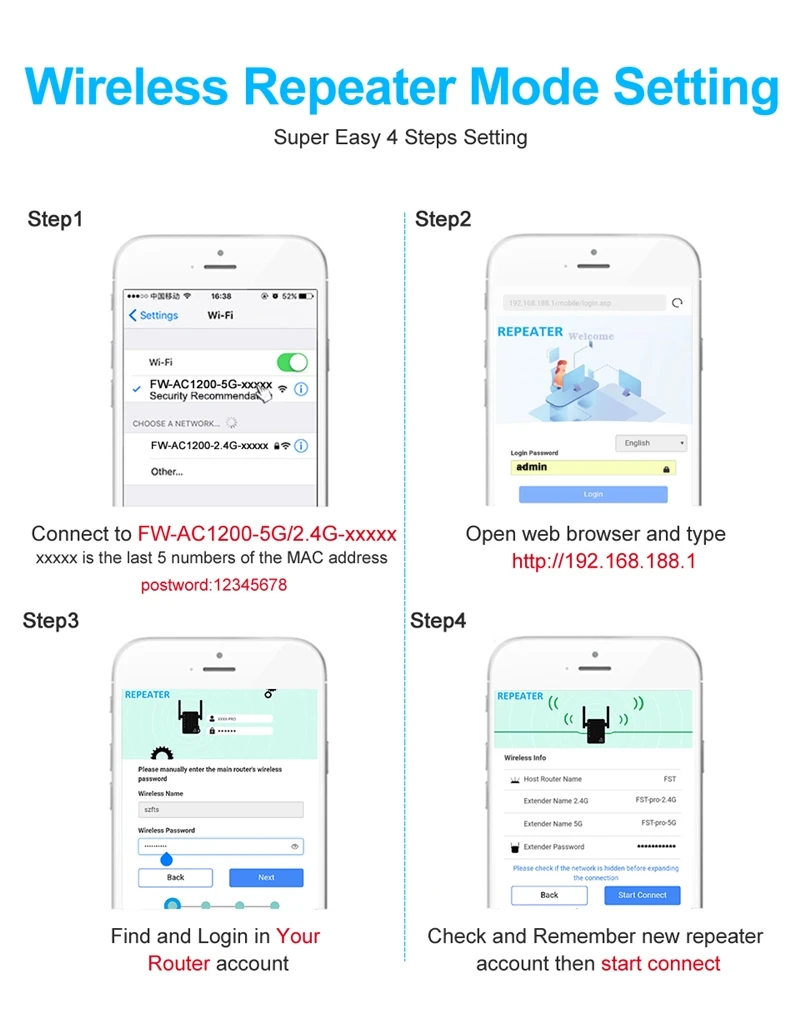 Repetidor WiFi de 5 Ghz, extensor Wifi inalámbrico, amplificador Wi-Fi de 1200Mbps, amplificador de señal Wi FI de largo alcance de 300Mbps, repetidor Wifi de 2,4G
