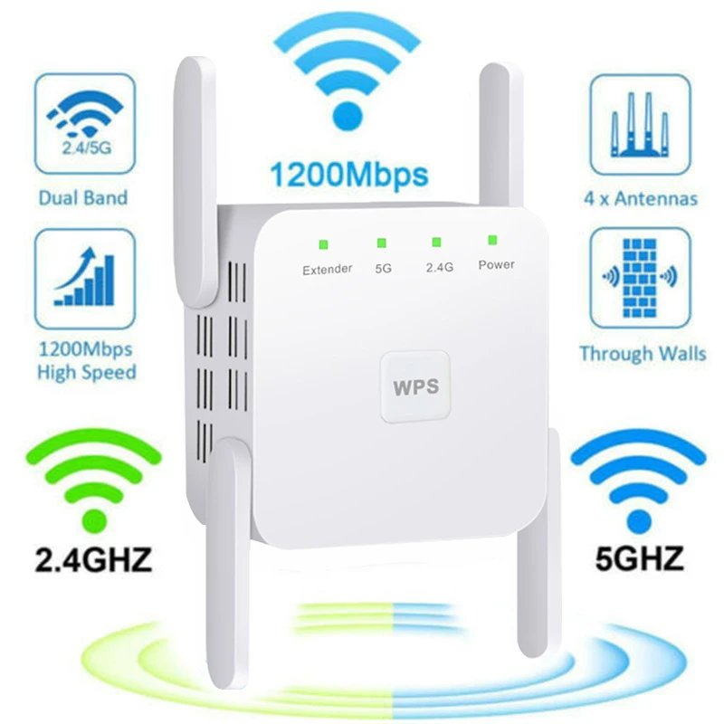 Comprar Repetidor WiFi FSU 5G, amplificador Wifi, extensor de red Wifi, amplificador Wifi de 1200Mbps, repetidor de internet de red inalámbrica de largo alcance