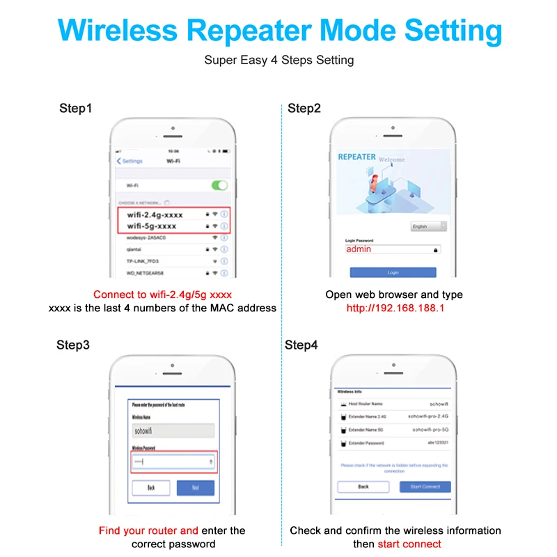 5 - Después de seleccionar el nombre del enrutador que desea conectar, ingrese la contraseña del enrutador original y cambie el nombre del repetidor con el nombre que puede recordar fácilmente (o no). ¡Haga clic en Aceptar para confirmar que la configuración se realizó correctamente!