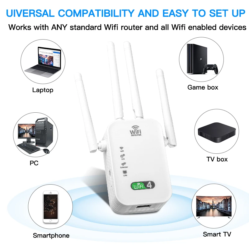 Cumple con el estándar IEEE802.11 b/g/n: el repetidor WiFi inalámbrico se adapta a casi todos los enrutadores y tarjetas de red inalámbricas para ampliar la cobertura de la señal de la red inalámbrica y extender la distancia de transmisión.
