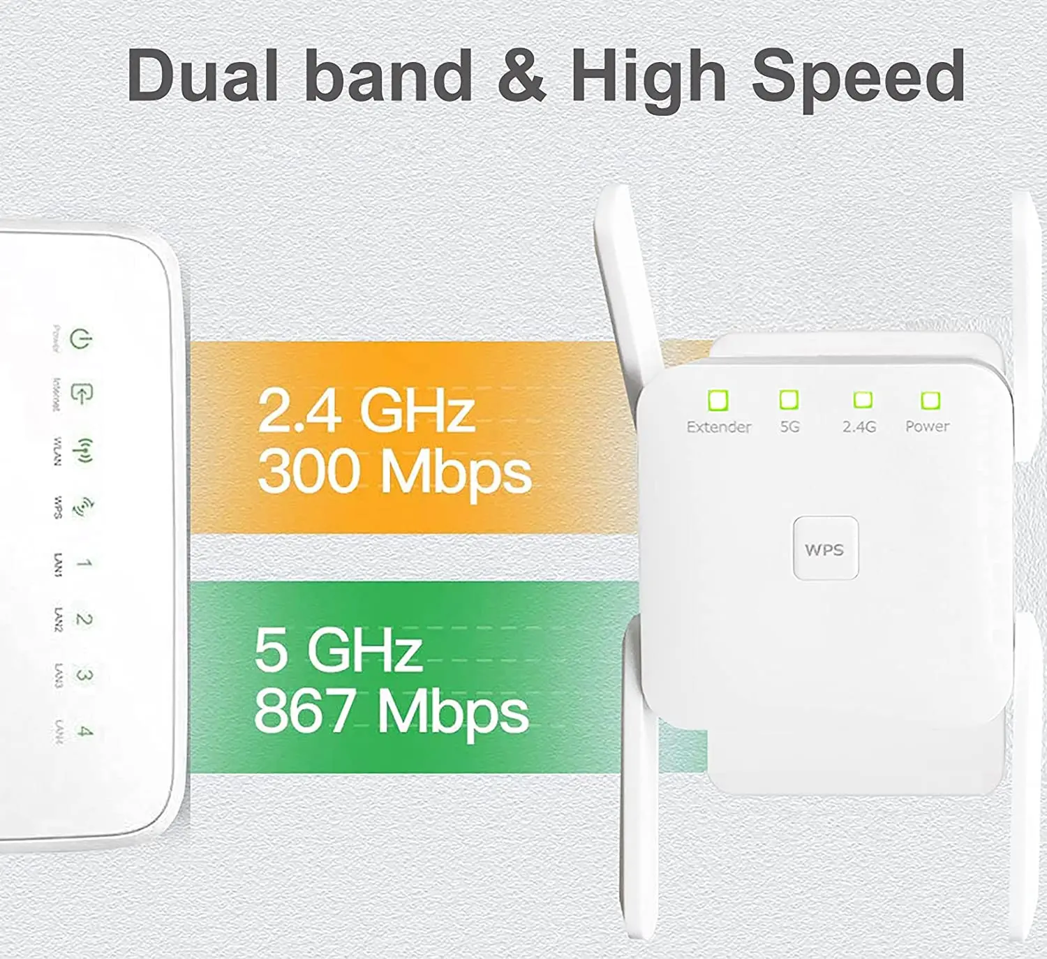 El extensor de doble banda se utiliza con enrutadores de doble banda para dar rienda suelta al alto rendimiento de las dos bandas de frecuencia y usar el potencial de banda ancha