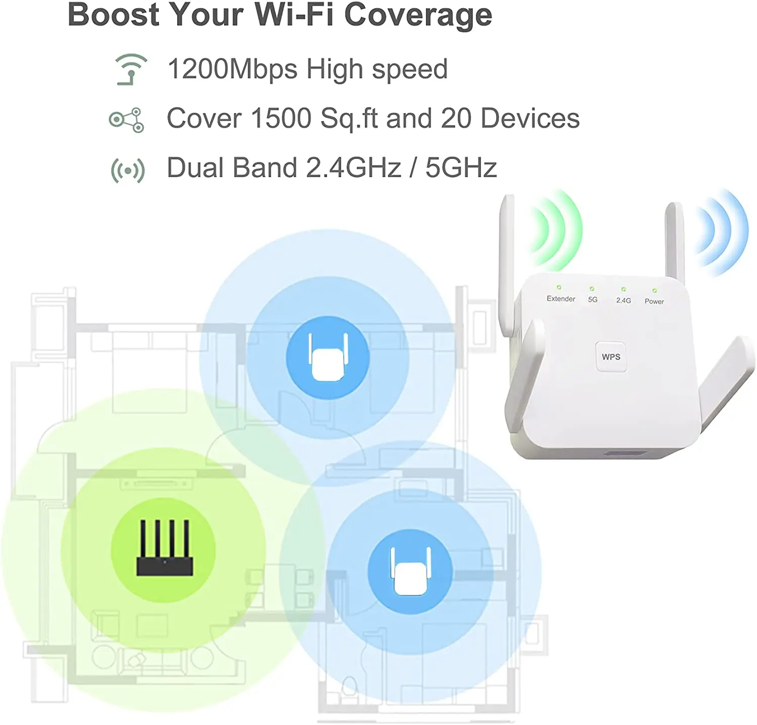Repetidor WiFi de 5 Ghz, extensor Wifi inalámbrico de 3000Mbps, amplificador Wi-Fi 802.11N, amplificador de señal Wi fi de largo alcance de 2,4G, retén Wifi