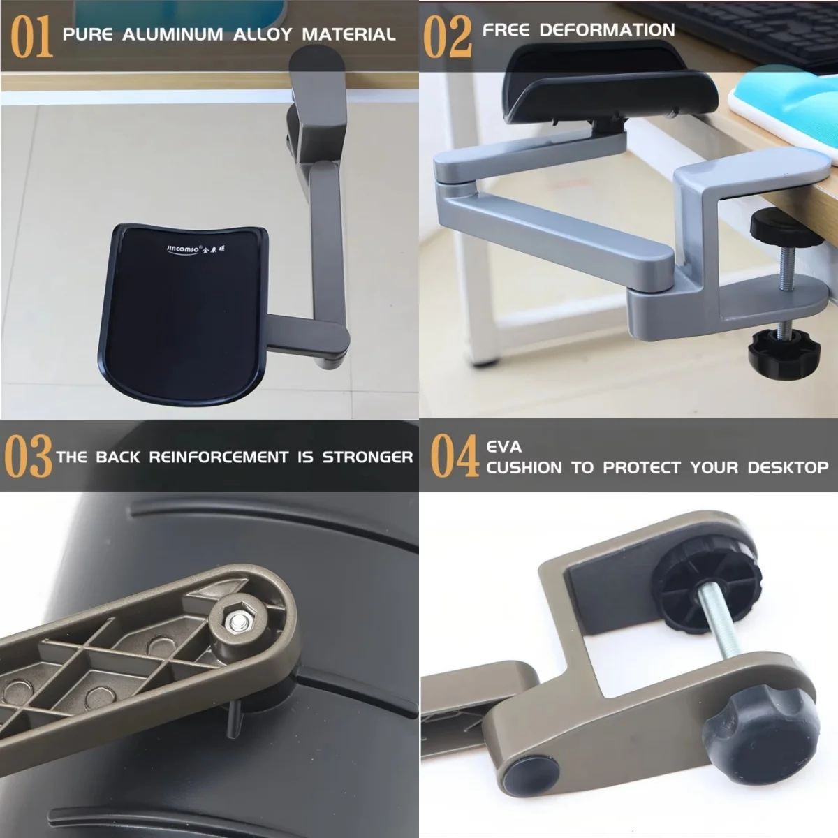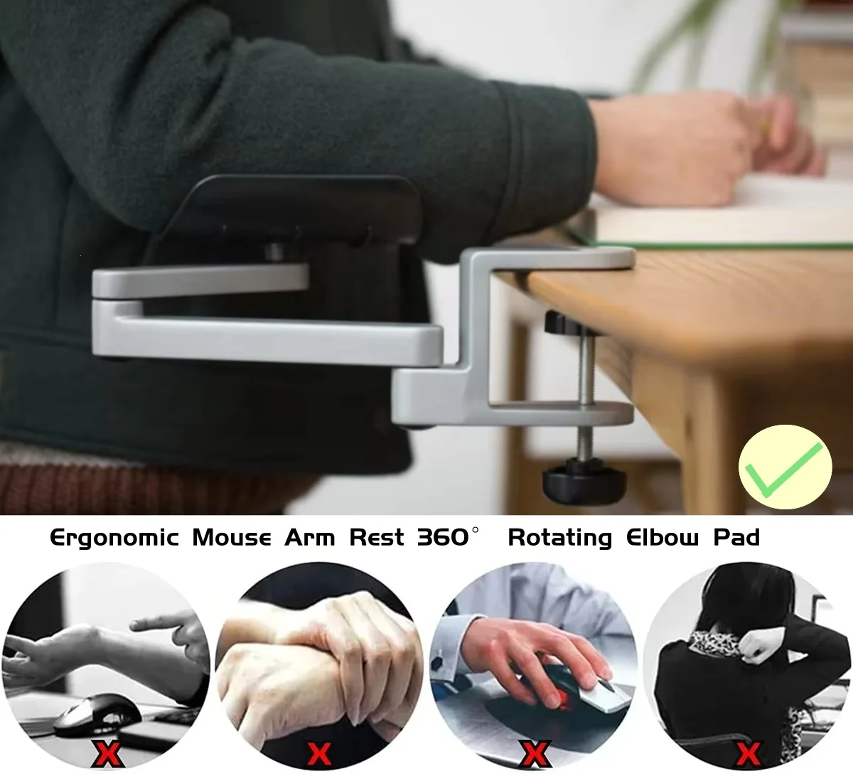 Comprar Reposabrazos ergonómico ajustable para ratón 360 ° Codera giratoria con abrazadera de aleación de aluminio para comodidad en escritorio y oficina