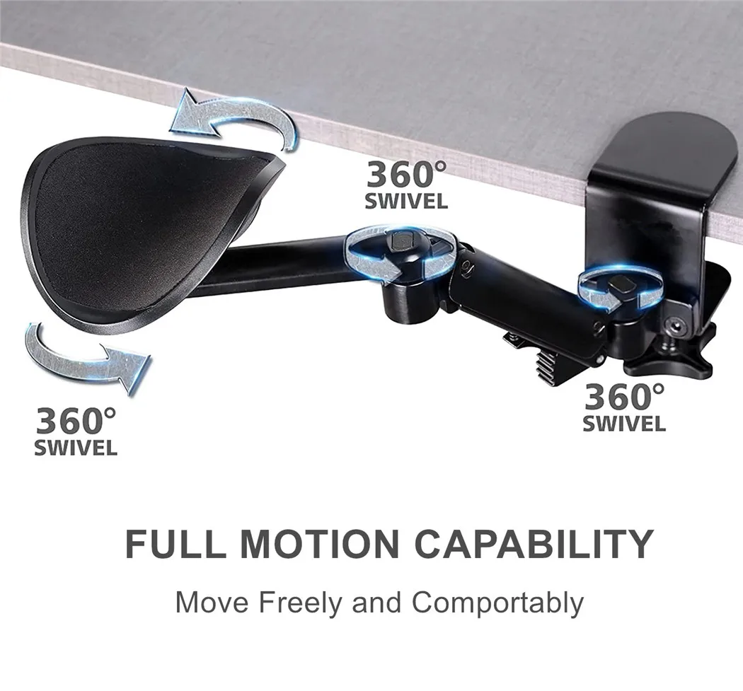 Arm Rest Ergonomic Rotating Computer Desk Arm Support Adjustable Metal Mouse Pad Arm Wrist Armrest Hand Shoulder Clamp-on Table Extension Platform