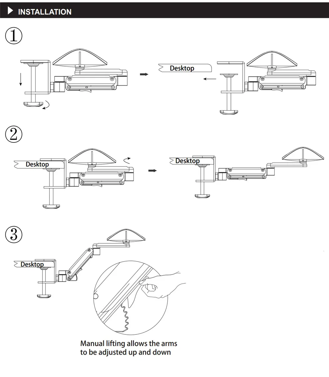 Easy to use - Portable and installed simply. Unscrew to attach to desks, adjustable to desks up to 2 inches thick.