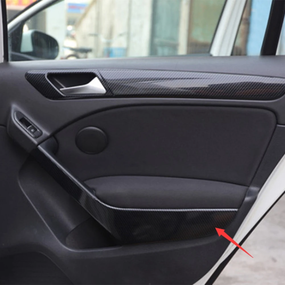 Comprar Reposabrazos de puerta Interior de coche, cubierta embellecedora de fibra de carbono para Golf 6 MK6 -2008-2012, accesorios