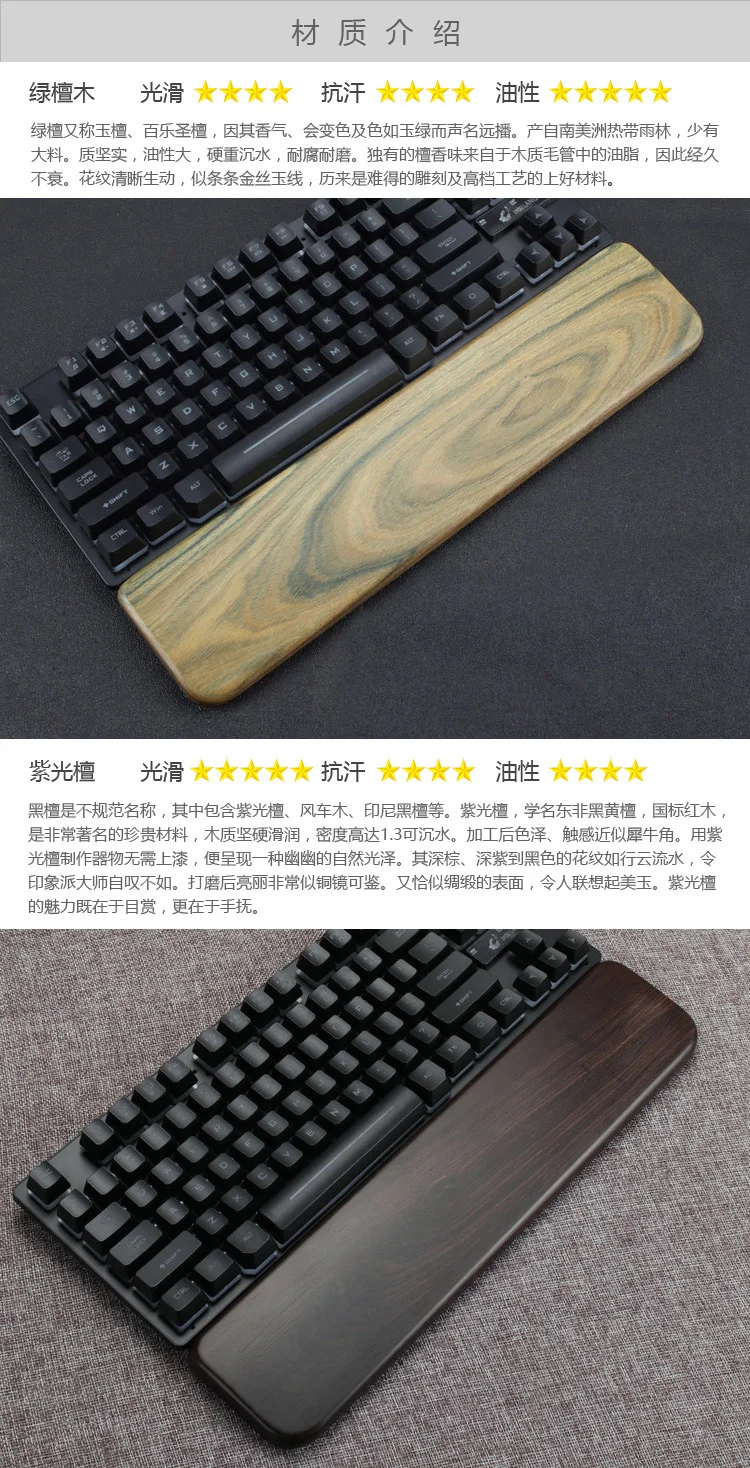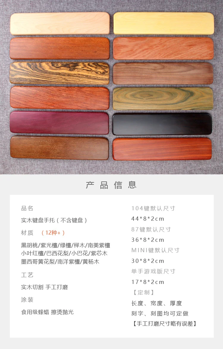 Reposamanos de madera Reposamuñecas de madera de nogal personalizado Palma de madera maciza Stress 104/87 Accesorios de teclado mecánico Filco para lluvia75