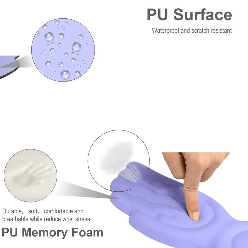Diseño ergonómico: Los estudios científicos han demostrado que el culpable del dolor de muñeca es la postura incorrecta de la muñeca. Los reposamuñecas ergonómicos proporcionan un apoyo adicional y al elevar la muñeca a la altura correcta mantiene la muñeca recta. Mejora la postura de la mano y la muñeca, evita problemas en las articulaciones y la muñeca, y libera la presión sobre los codos y los hombros. También permite una mayor circulación de aire para evitar un uso prolongado.