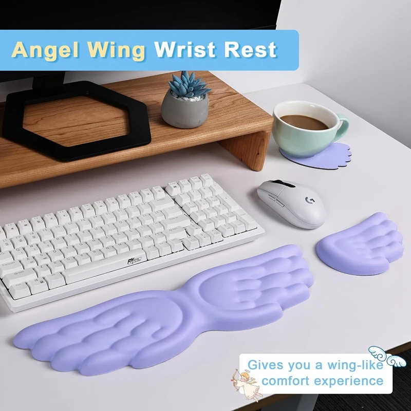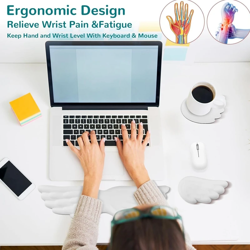 Apariencia única: un reposamuñecas de teclado perfecto debe ser práctico, y una apariencia linda y elegante es esencial, que será el compañero perfecto para combinar con su alma interesante. La almohadilla de soporte del reposamuñecas en forma de ala es un accesorio esencial para la computadora, que embellece su escritorio y hace que el ambiente general sea relajado, brindándole una experiencia cómoda como volar.