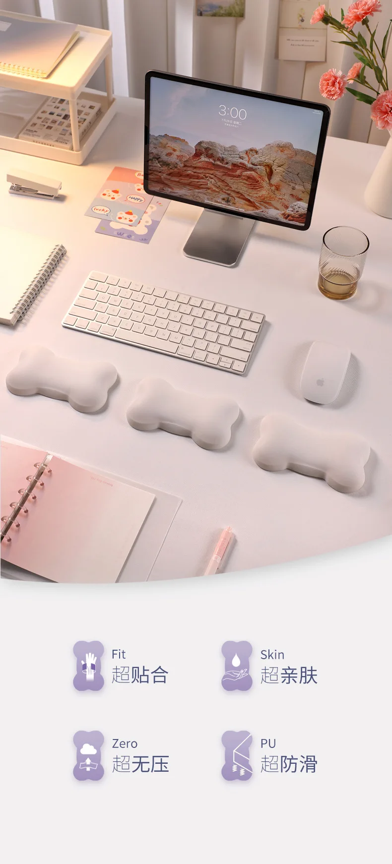 Teclado reposamuñecas almohadilla soporte ratón memoria espuma hueso tema ergonómico silicona antideslizante blanco negro Oficina Gaming PC portátil