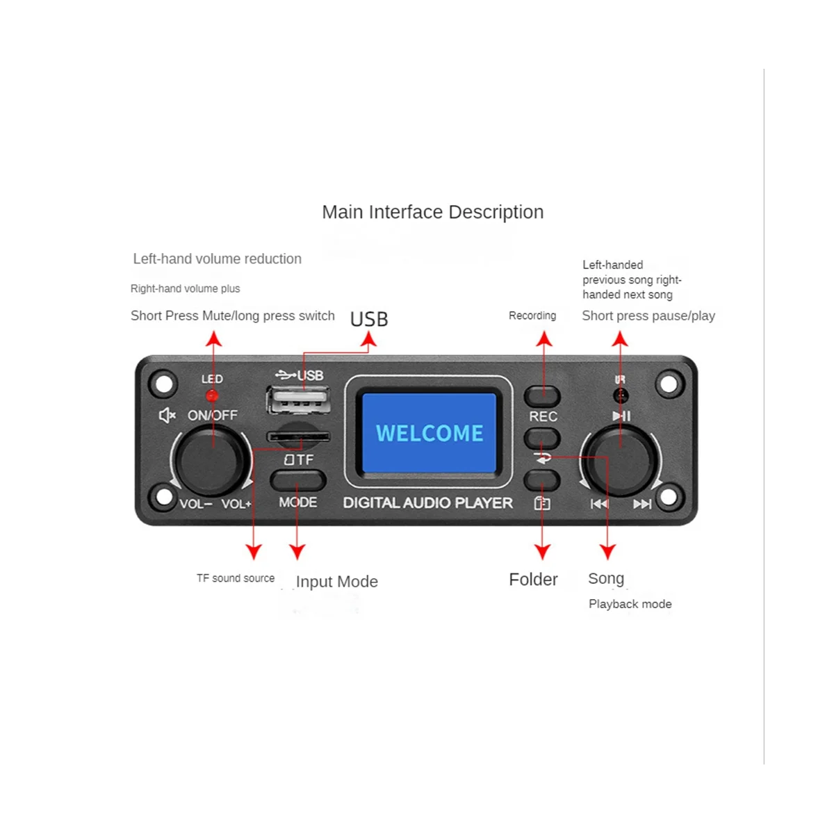Comprar Reproductor de Audio Digital con Bluetooth, reproductor de MP3, placa decodificadora, 128x64 puntos, LCD, USB, SD, BT, FM, módulo de reproductor de música TPM119B