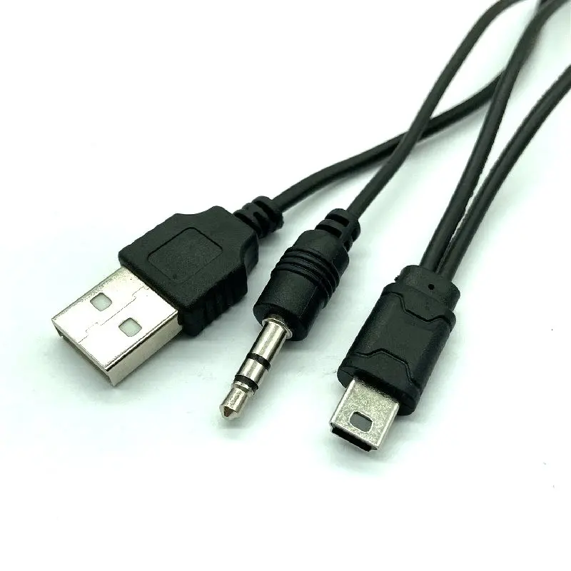 2 in 1 For Bluetooth Player Portable Speaker USB Cable Jack 3.5mm AUX Cable USB Male Mini USB 5 Pin Charge Data lines