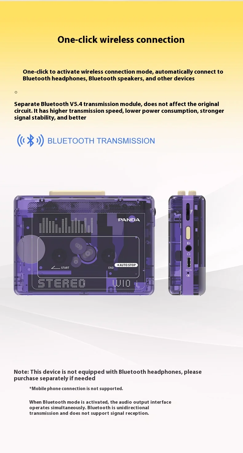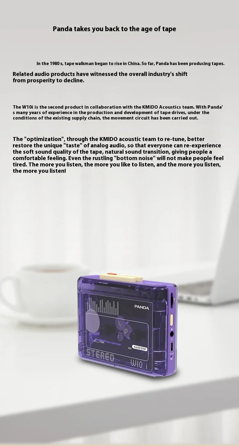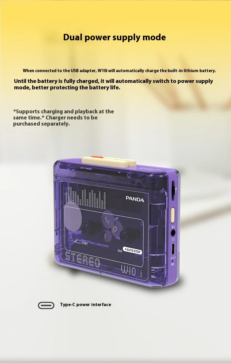 Comprar Reproductor de casete portátil PANDA W10i, reproductor estéreo de doble canal, 14 casetes Retro, reproductor individual Vintage, regalo de TYPE-C duradero