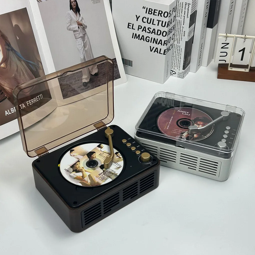 Comprar Reproductor de CD de escritorio portátil Retro, reproductor de CD con Bluetooth 5,0, altavoz de Audio estéreo HIFI, reproductor de CD de escritorio con grabación FM