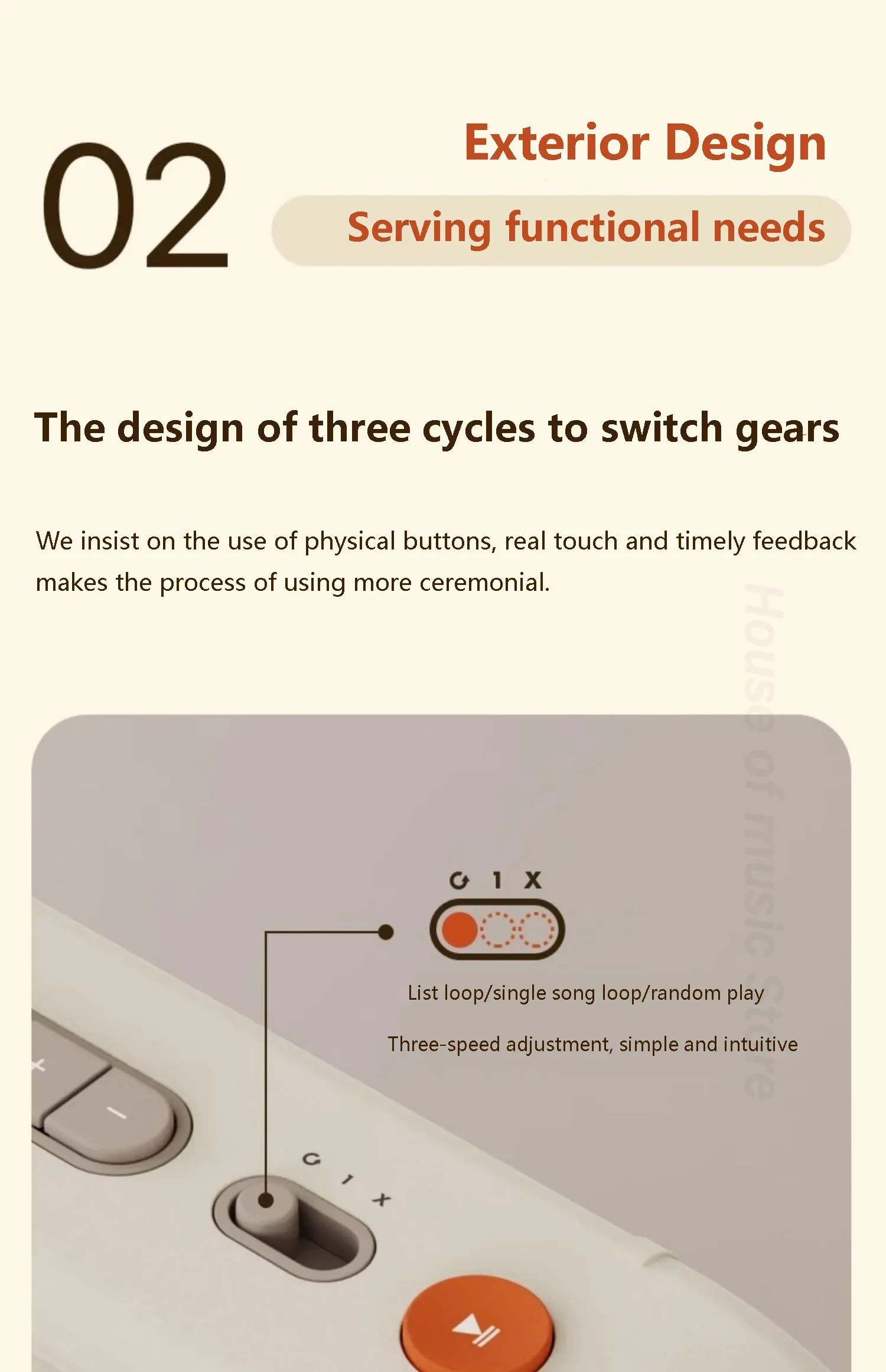 4: El diseño de los tres engranajes de conmutación de ciclo, insistimos en el uso de botones físicos, el sentido real del tacto y la retroalimentación oportuna para hacer el uso del proceso más ceremonial.