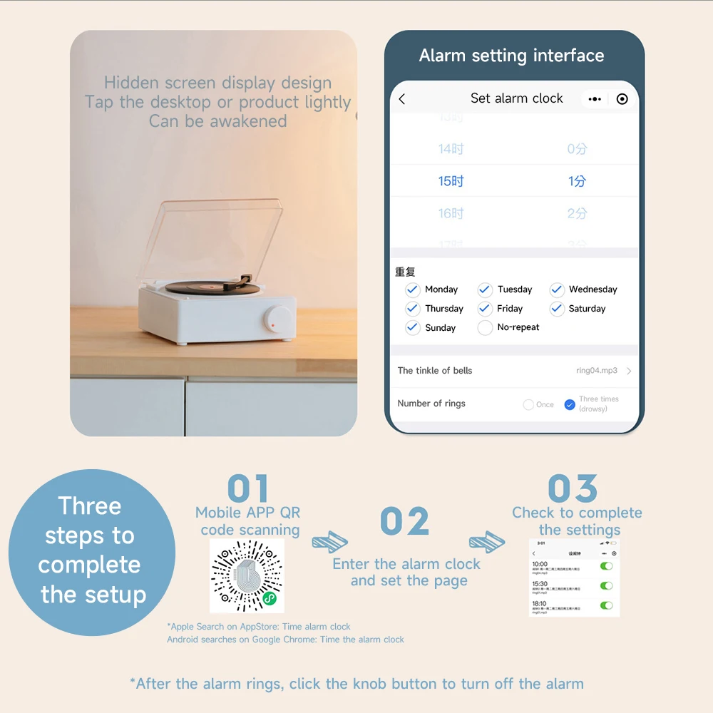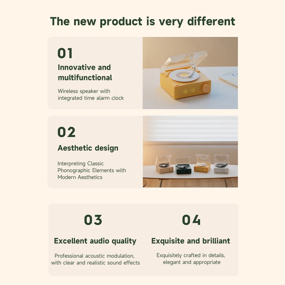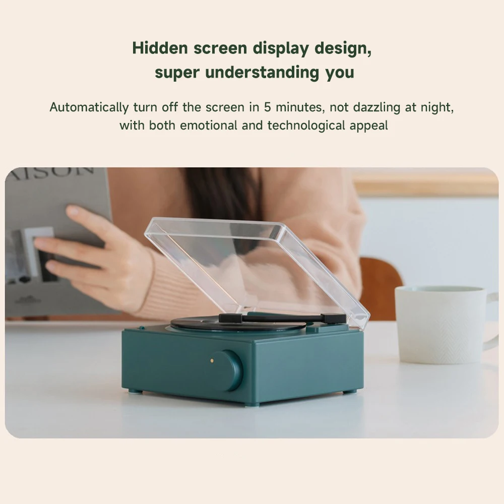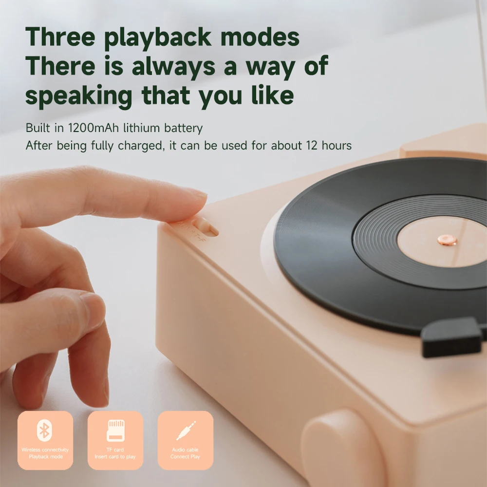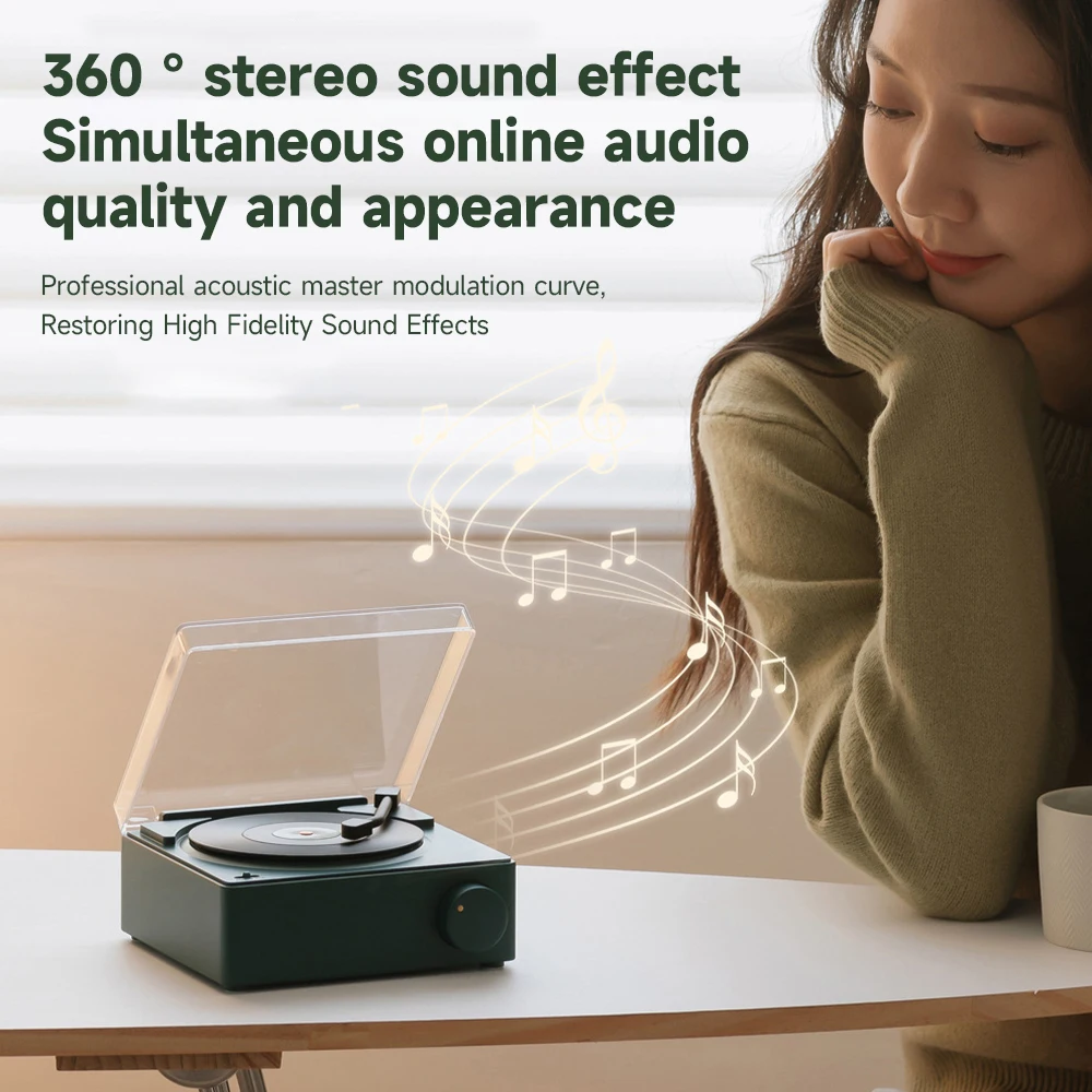 Comprar Reproductor de discos inalámbrico portátil BT 5,0, altavoz de vinilo atómico multifuncional con despertador para teléfono, escritorio, estéreo inteligente para el hogar