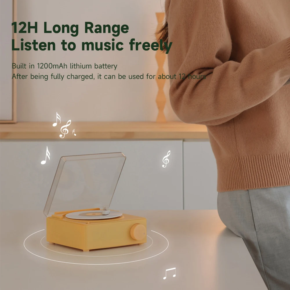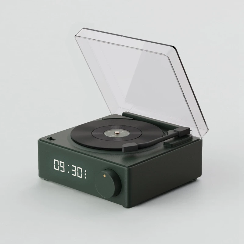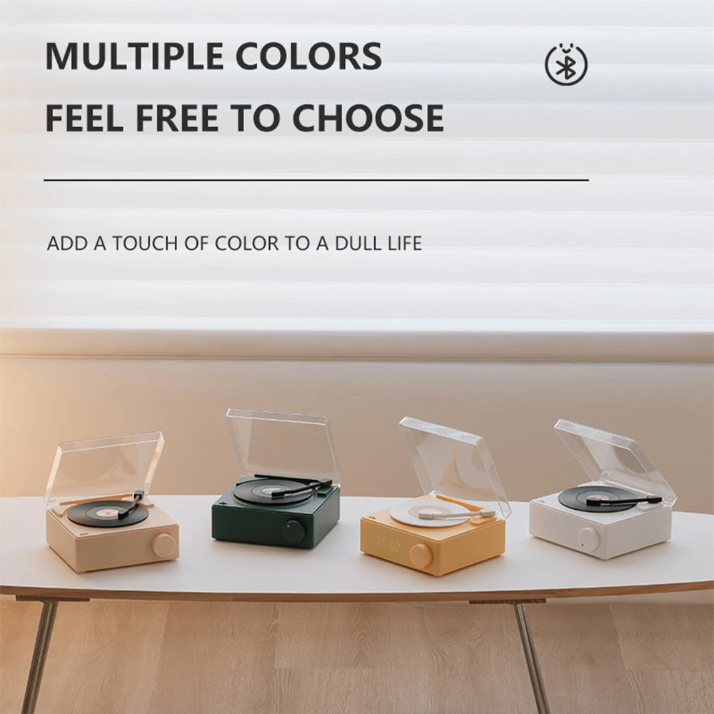 Comprar Reproductor de discos inalámbrico portátil BT 5,0, altavoz de vinilo atómico multifuncional con despertador para teléfono, escritorio, estéreo inteligente para el hogar