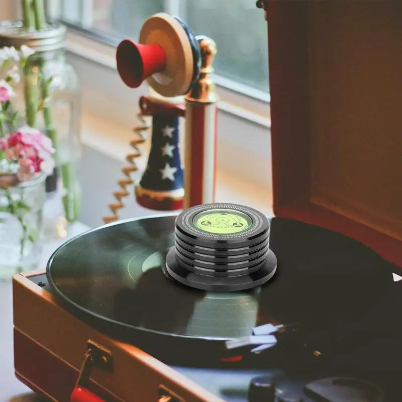 Este es un excelente estabilizador de registro para tocadiscos LP de 60Hz. Puede evitar que el disco tiemble y reducir la vibración a una velocidad estable.