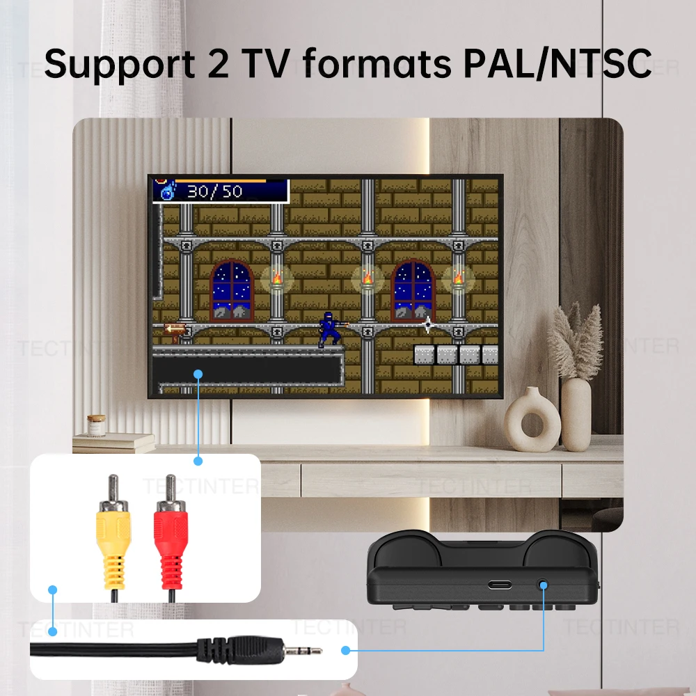 Esta consola de juegos portátil es compatible con GB/GBA/GBC/FC/SFC/MD/PCE que cubre muchos tipos de juegos, como aventuras, acción, carreras, etc.Más de 6000 juegos están preinstalados. Los jugadores pueden seguir los tutoriales en vídeo que nos proporcionamos y jugar los juegos por sí mismos.