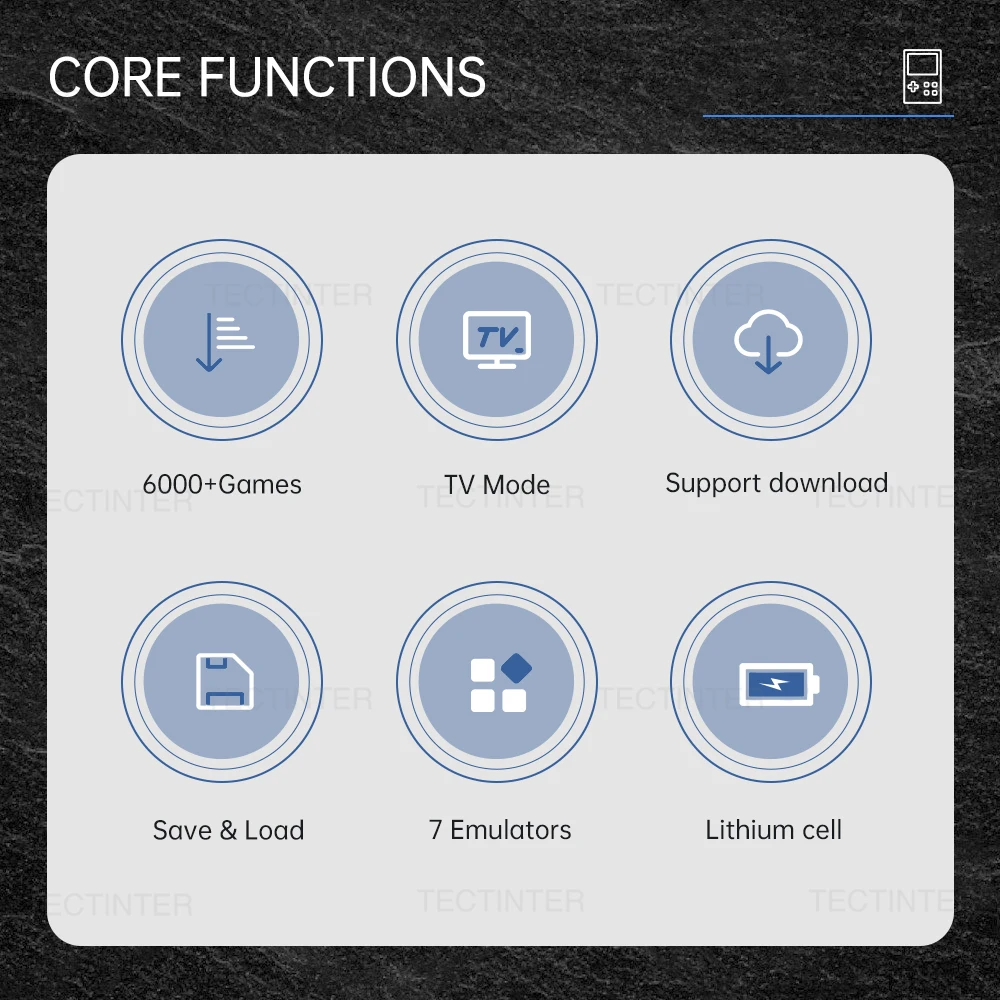 Esta consola de juegos portátil tiene más de 6000 juegos clásicos seleccionados, pantalla HD 3.0, pantalla suave de alta definición con joystick de alta precisión, soporte para descargar y coleccionar juegos, soporte para 7 tipos de emuladores, que cubren una amplia gama de juegos